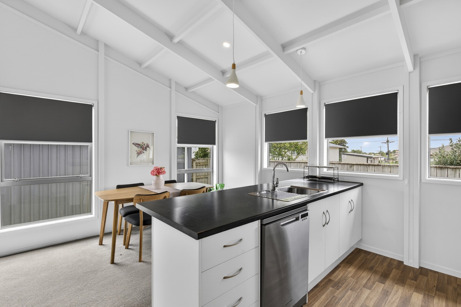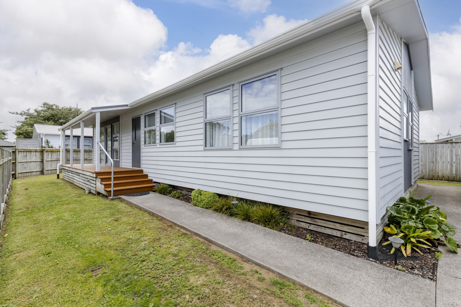 At the heart of the home is the large open plan lounge, dining and kitchen, designed for relaxed living and easy entertaining. A sliding door opens from the lounge onto the front deck and porch, creating a seamless indoor/outdoor flow and a great spot to entertain. Outside, the low maintenance backyard offers the option to add gardens or simply enjoy it as is.