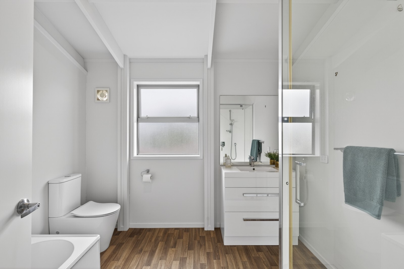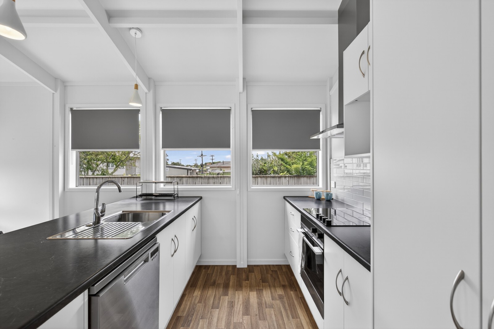 Tucked away as the middle house down a right of way, this property enjoys privacy while still being close to everything Westown has to offer. Inside, you’ll find three bedrooms, including a generous master with ensuite, two double bedrooms, plus a smaller third room that works perfectly as a kids’ room or home office. The family bathroom is well appointed with a shower, bathtub, toilet and vanity, ideal for everyday living.