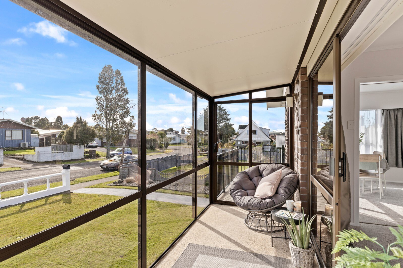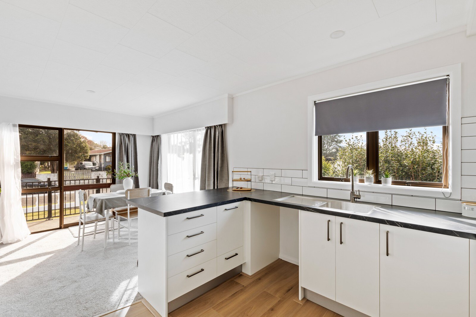 Follow the steps up to the front door via your new concrete pathway and enter into the hallway. On the right, walk into the modern open plan kitchen and dining room which leads you into the extra-large lounge. The dining room has access to a small verandah outside. The kitchen has plenty of cupboard space and offers all new appliances including gas cooktop to compliment its new cabinetry and flooring. The extra large family friendly lounge can be closed off with a sliding door if you wish. The good sized sunroom flows directly off the lounge offering street views and is the perfect spot for your morning or afternoon coffee in the sun and to sit back and relax.