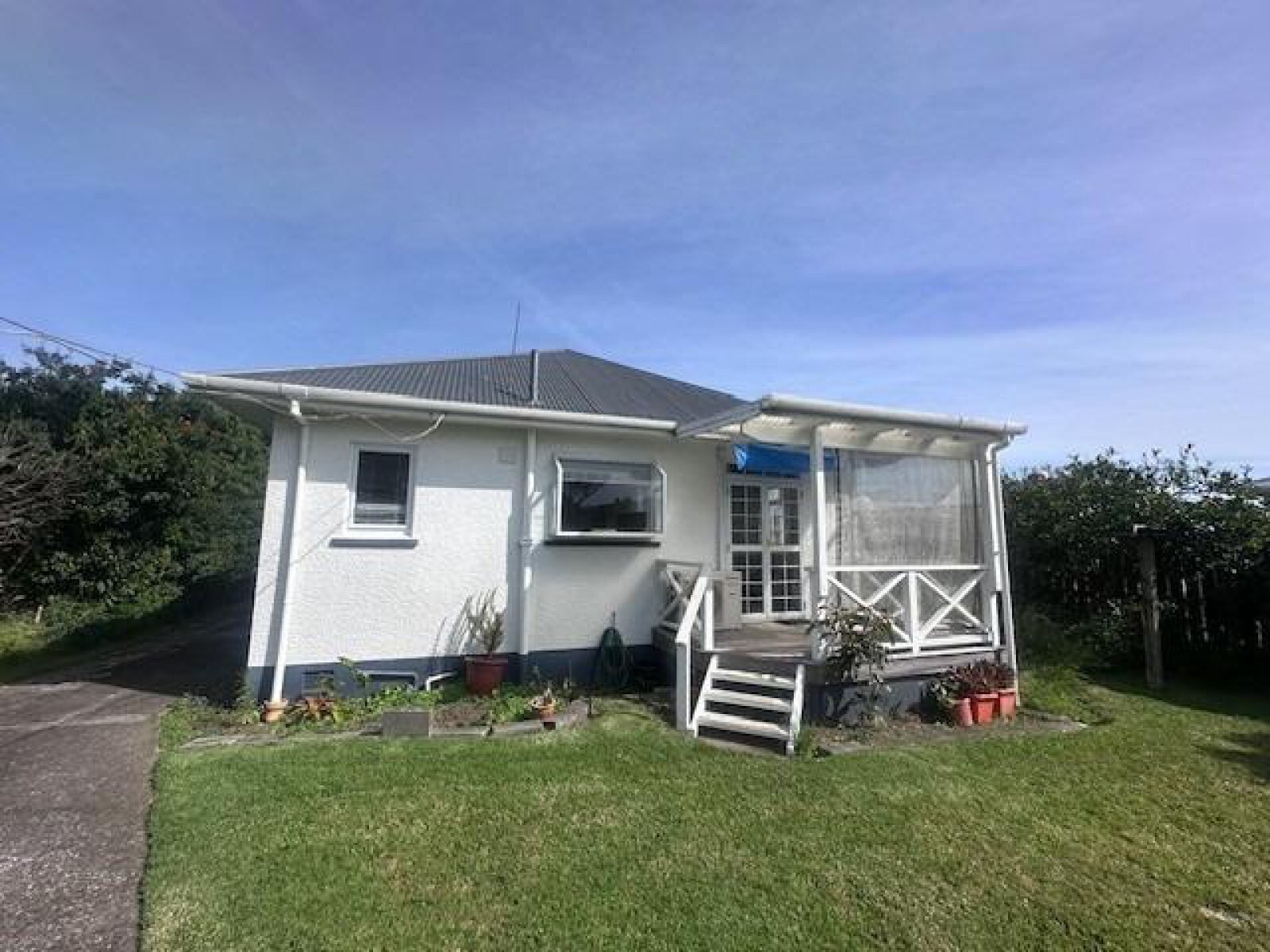 Inside, you'll find a unique layout either offering three cozy bedrooms or two with an office, or potentially two living areas, you choose the set up - perfect for a small family, roommates, or couples. Tidy kitchen, bathroom has shower over the bath, vanity and toilet.