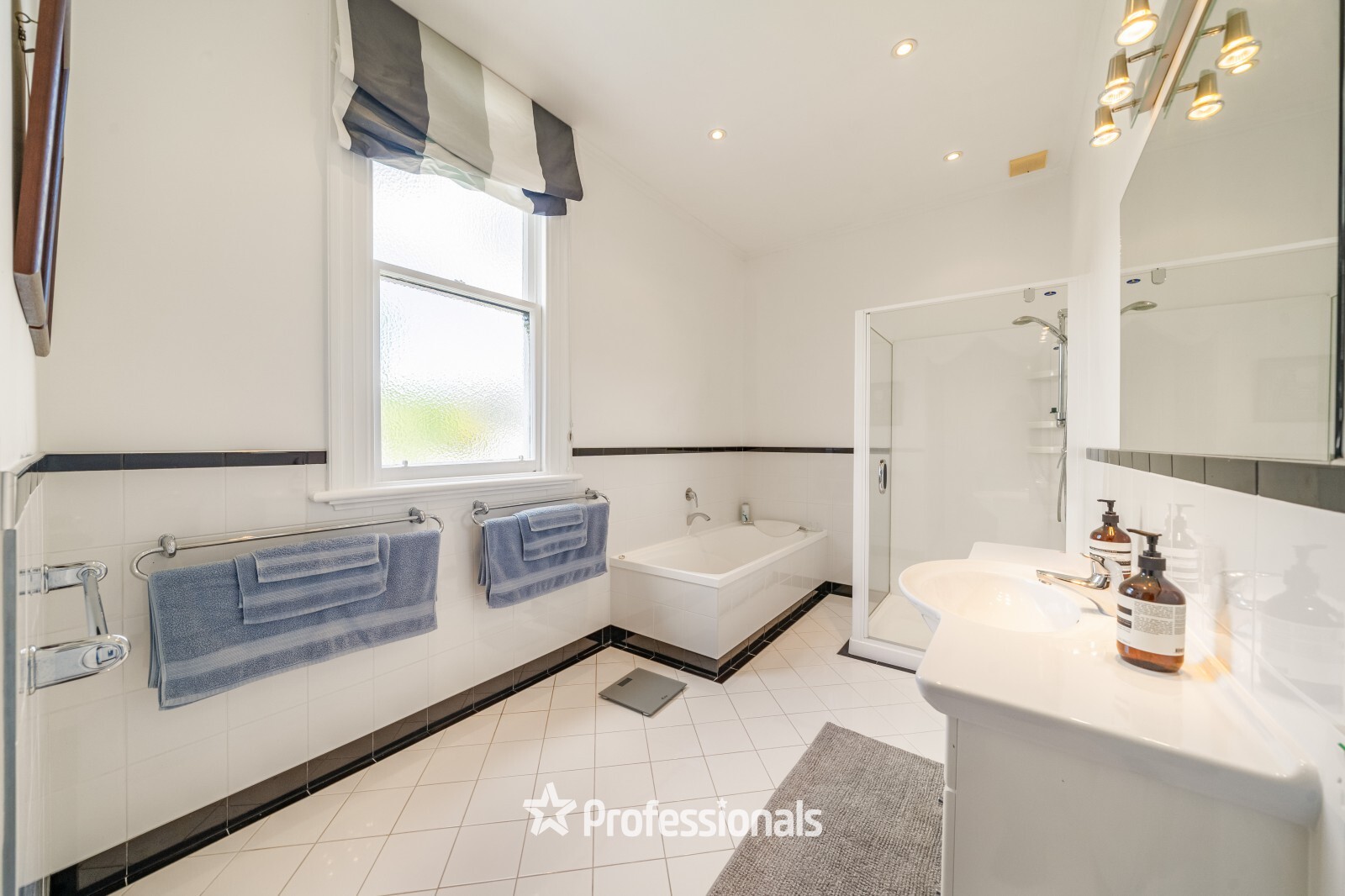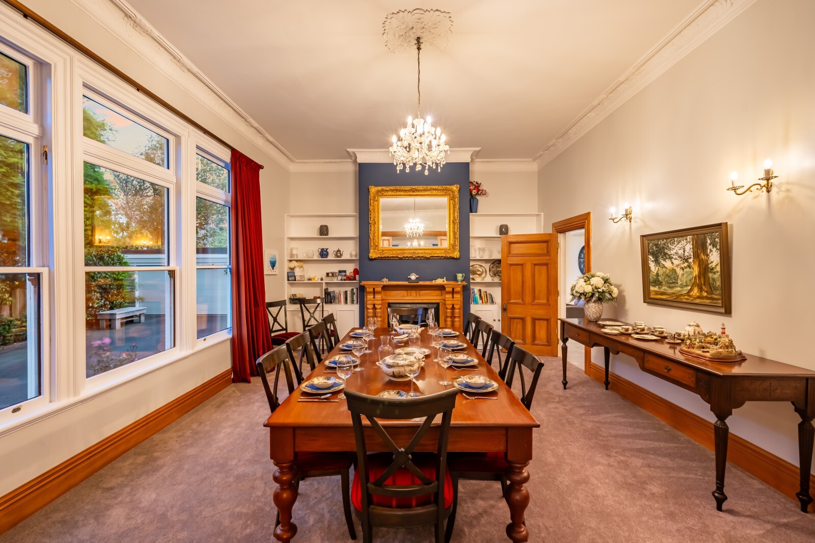 Inside, Anson House unfolds with the same generosity she was built for. Soaring ceilings, rich native timbers, and heritage hues frame spaces designed for connection, from the formal dining room that invites celebration, to the light-filled living areas that embrace everyday family life. The large, modern kitchen has been beautifully appointed to complement, not compete with, her timeless character.