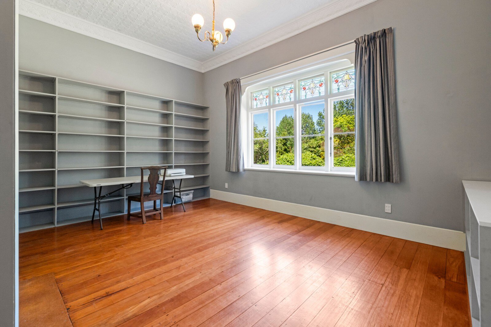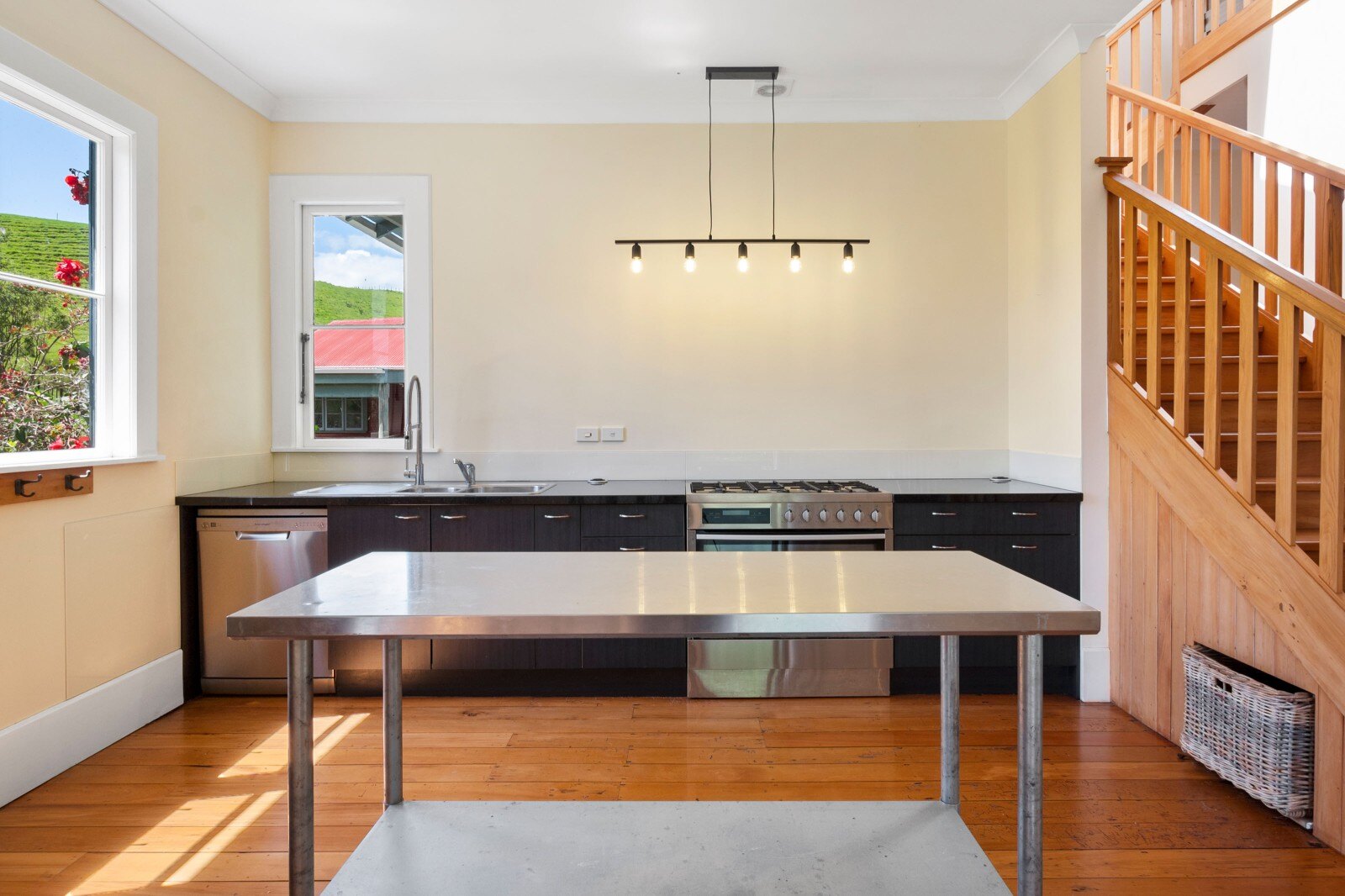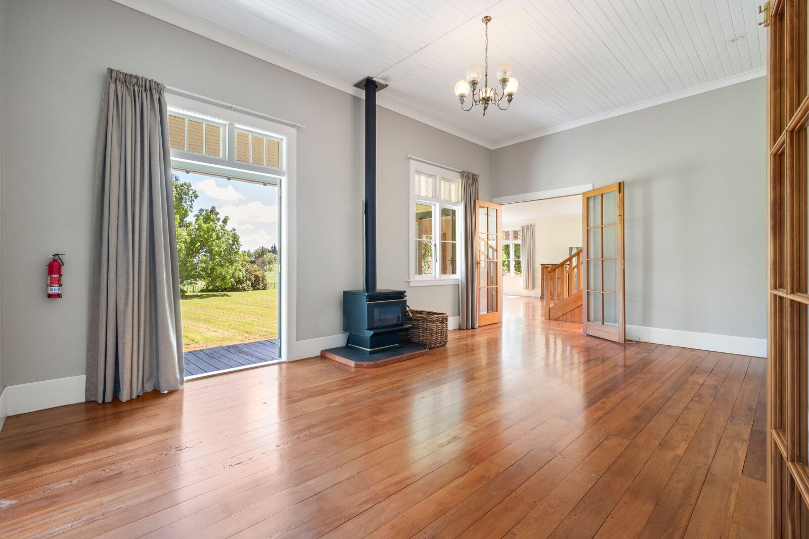 Inside, you’ll find ornate 3-meter ceilings, native timber floors, and beautiful lead light windows that reflect the home’s character and craftsmanship. The large separate lounge, complete with a wood burner, flows seamlessly to the heart of the home from a modern kitchen featuring stone bench tops, 6-burner gas cooker, and wide oven. French doors open to a Queenslander style undercover deck, providing the perfect transition to lush, private lawns for effortless outdoor living.