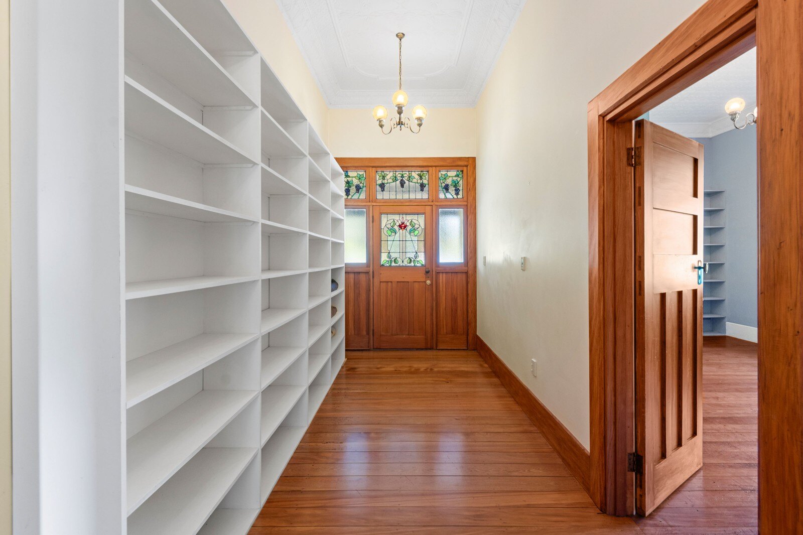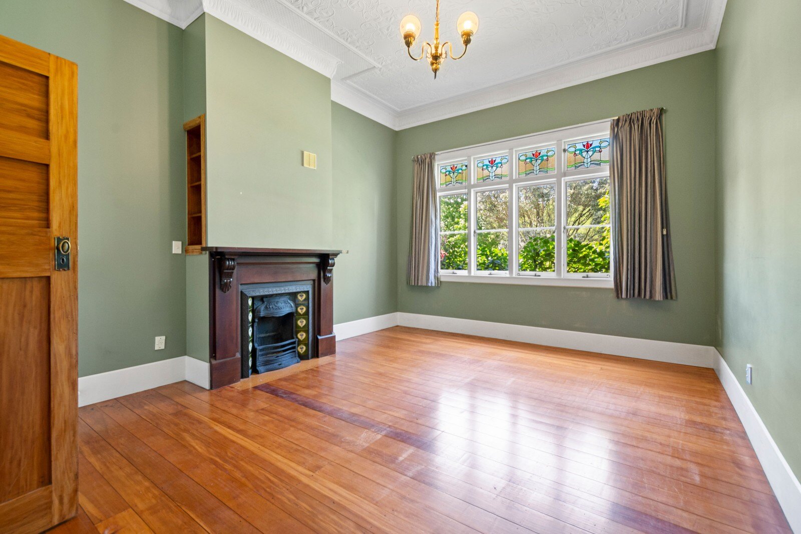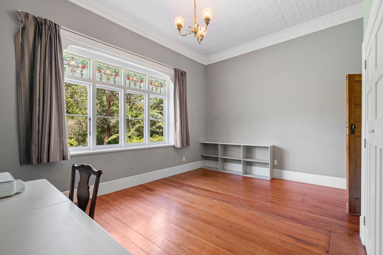 Inside, you’ll find ornate 3-meter ceilings, native timber floors, and beautiful lead light windows that reflect the home’s character and craftsmanship. The large separate lounge, complete with a wood burner, flows seamlessly to the heart of the home from a modern kitchen featuring stone bench tops, 6-burner gas cooker, and wide oven. French doors open to a Queenslander style undercover deck, providing the perfect transition to lush, private lawns for effortless outdoor living.