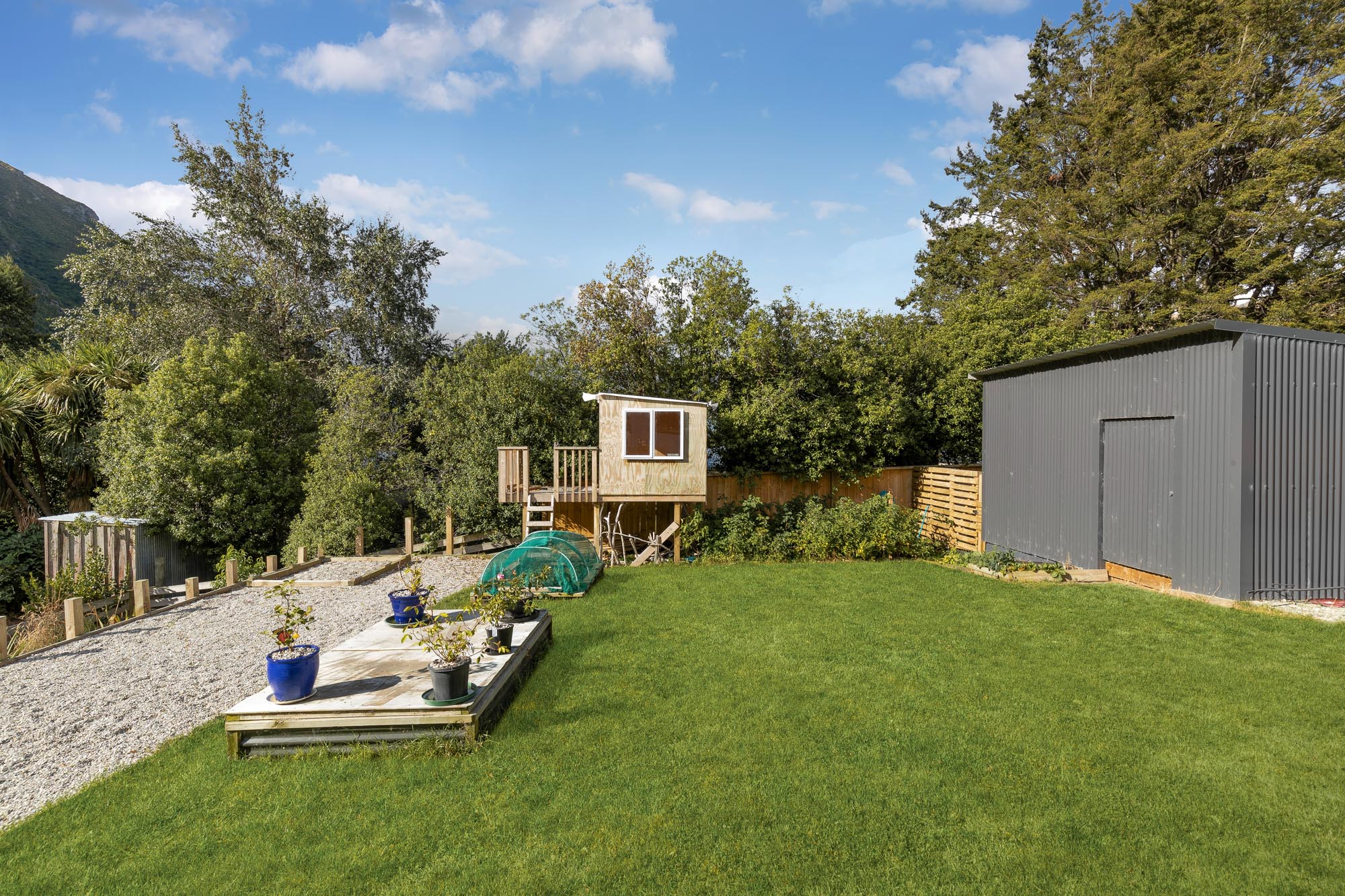 The property sits on a sizeable 910m2 site, thoughtfully landscaped with a mix of native trees, and flowers. Children will delight in the high-end playhouse plus the sandpit. For safety and peace of mind, the yard is fully fenced, complete with a dog run.