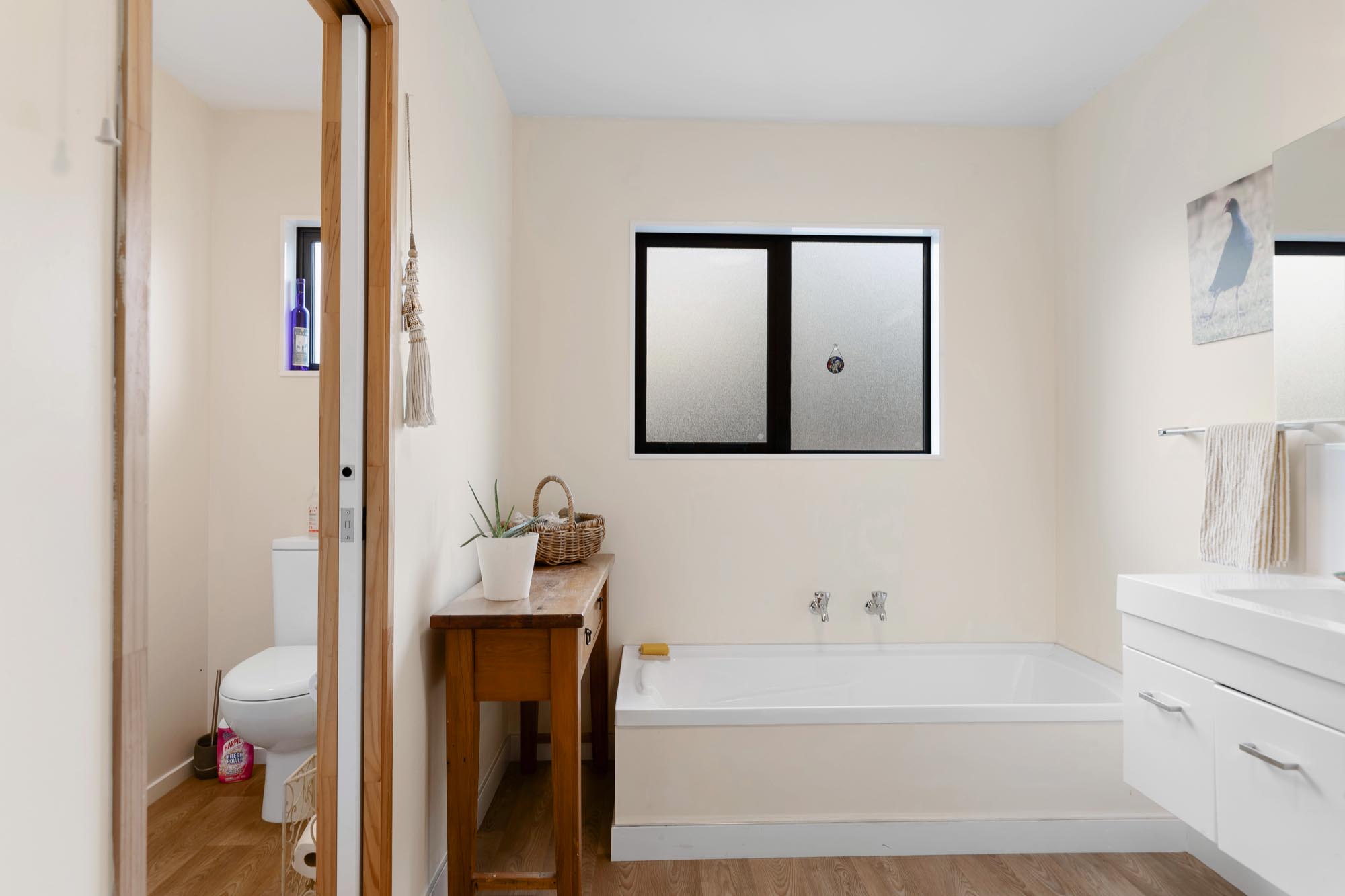 The home offers three bedrooms, each equipped with wardrobes. The master bedroom stands out with both a walk-in wardrobe and a separate wardrobe, along with an ensuite bathroom. Additionally, the family bathroom boasts both a shower and a bath, while a separate toilet ensures convenience when hosting guests.