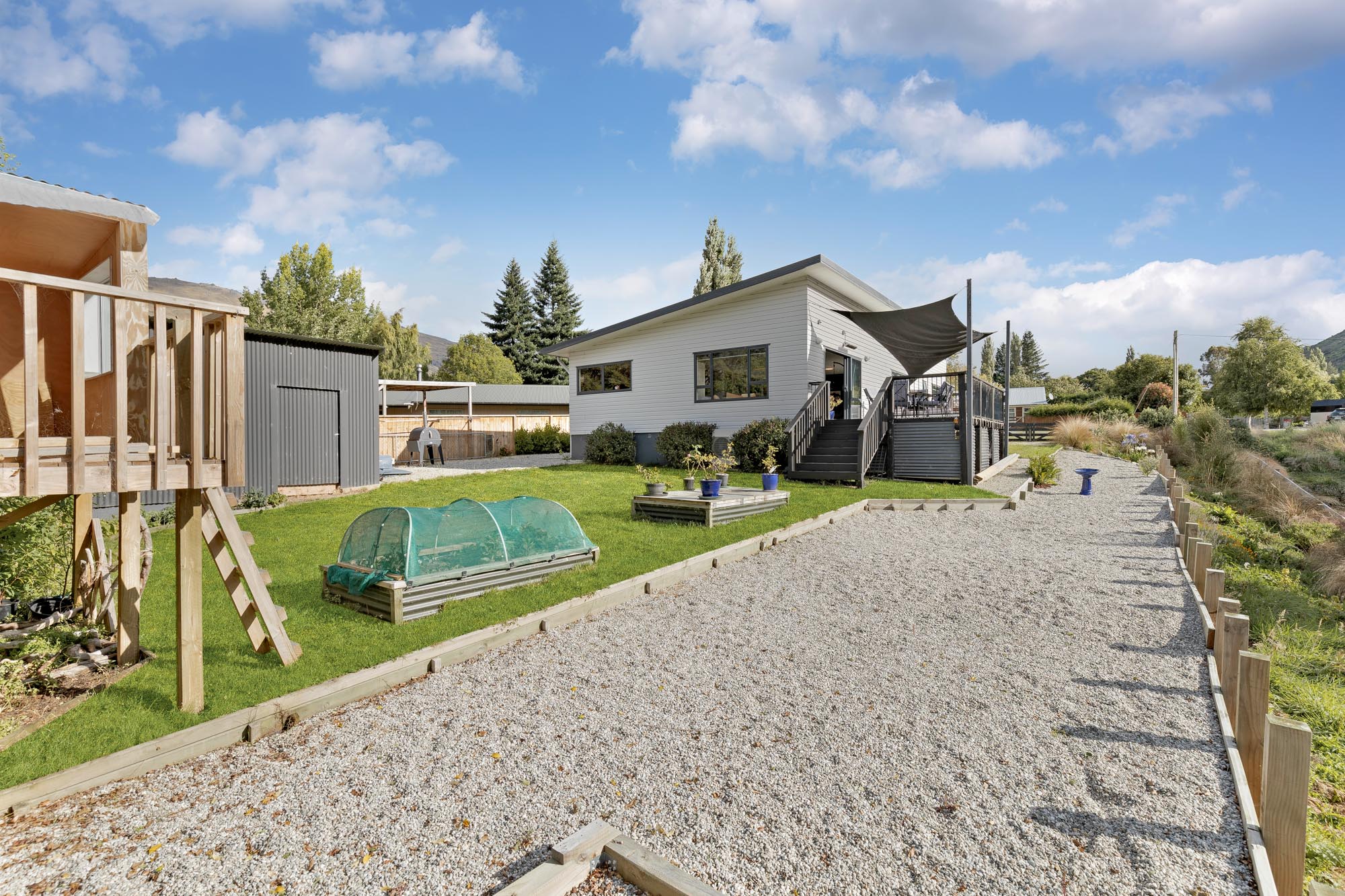 Plenty of parking space is available in the driveway and a large shed provides ample storage for tools, bikes and sporting equipment.