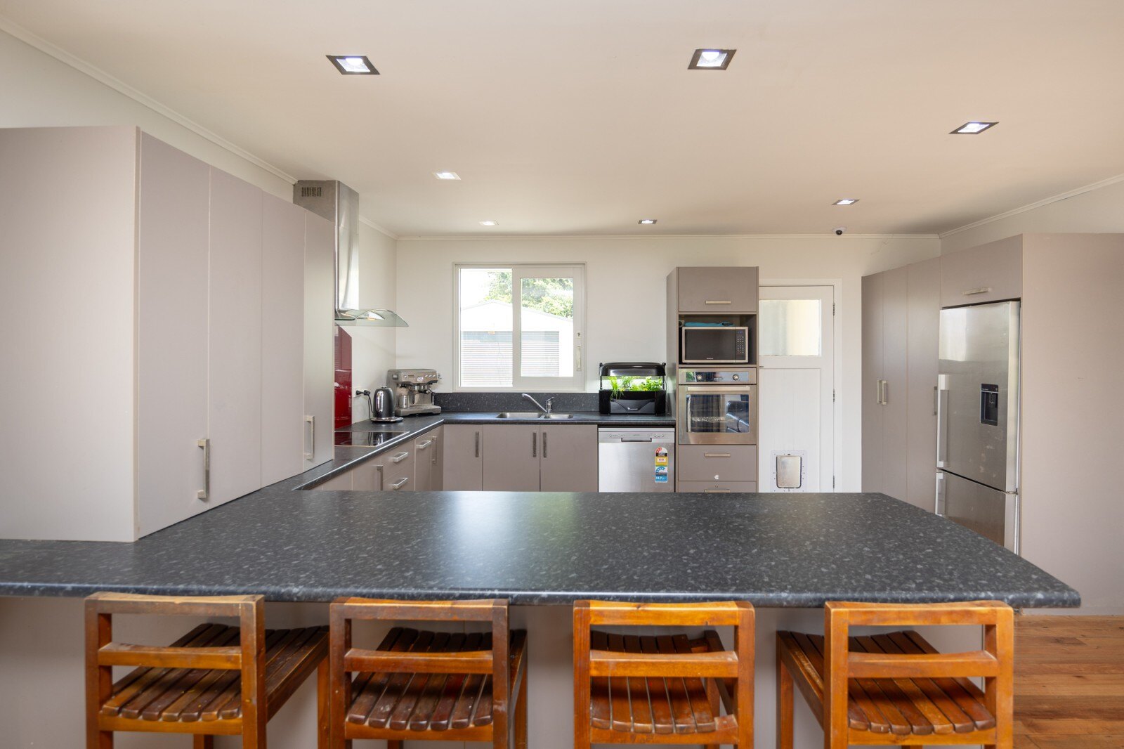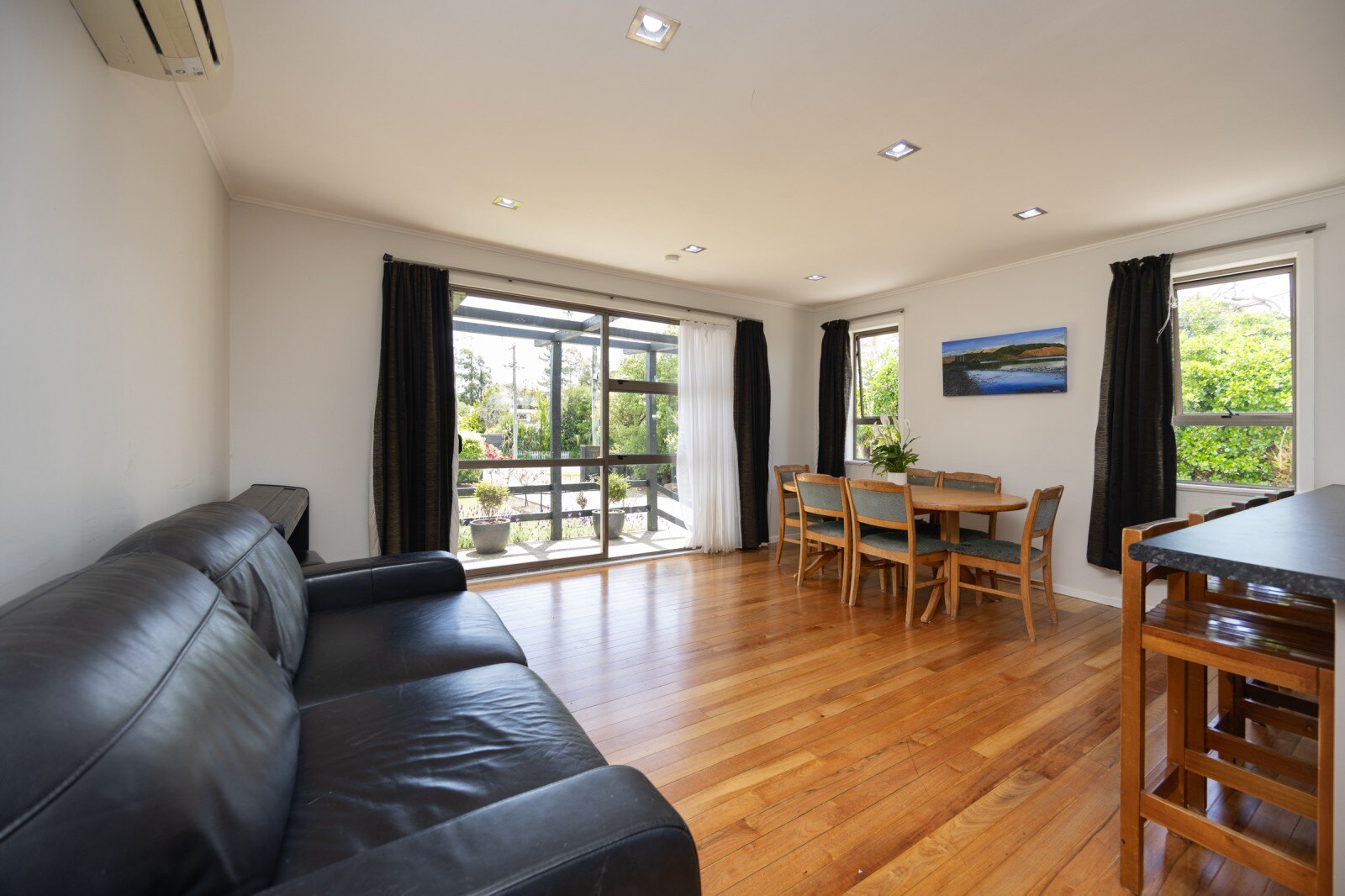 Inside, you're welcomed by an open-plan kitchen and living space, with beautiful natural floorboards that enhance the sun-filled rooms.