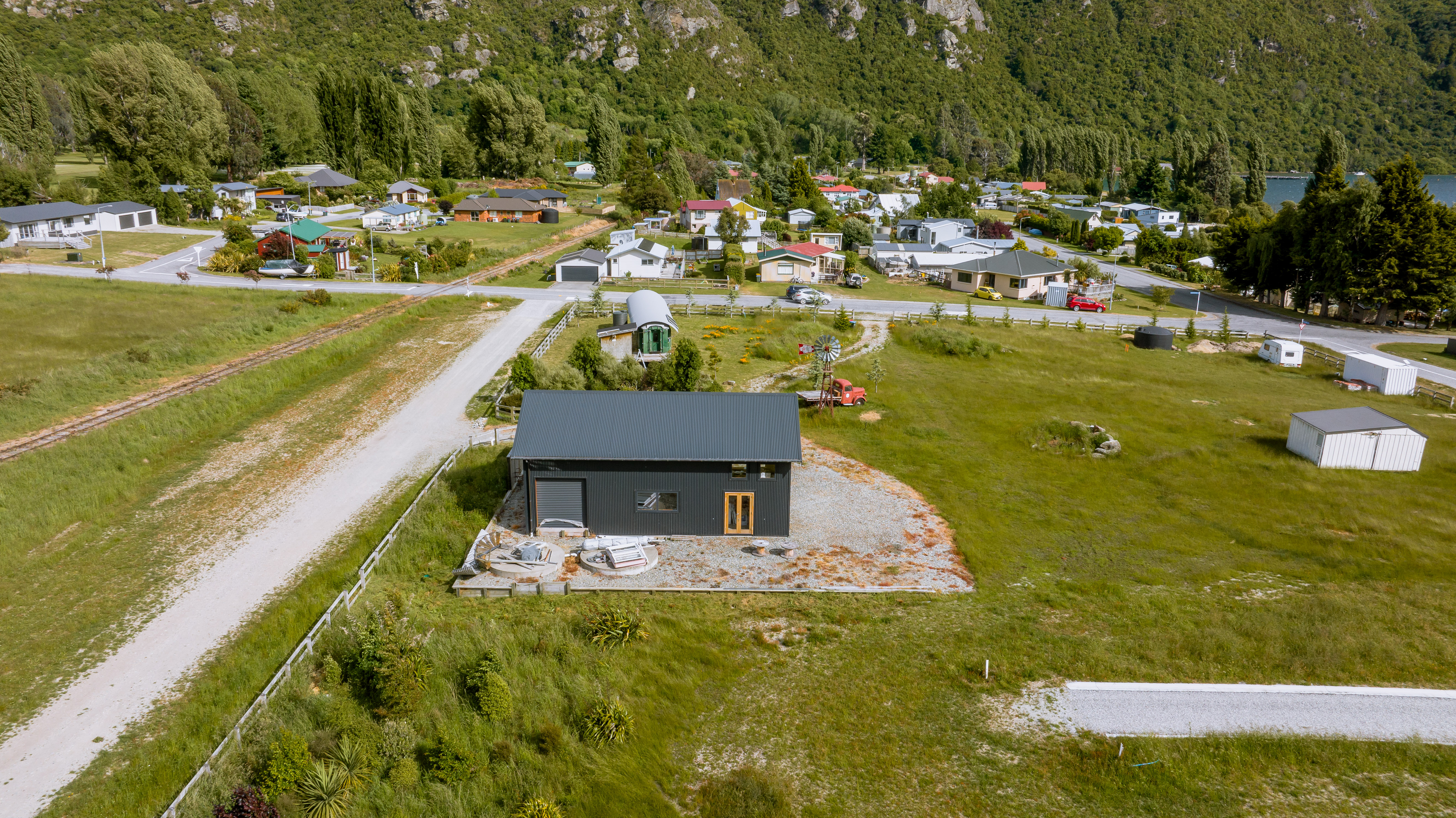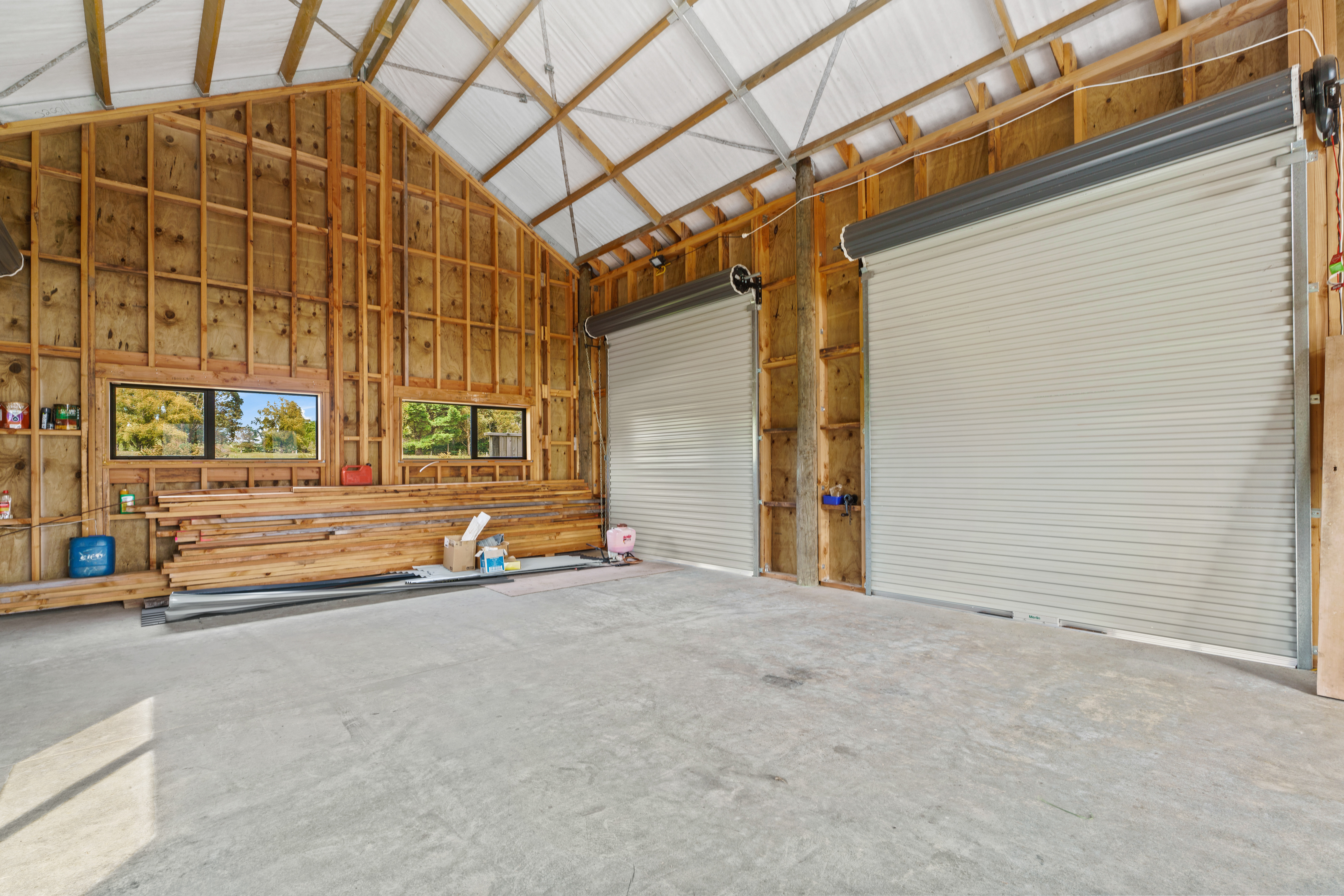 The spacious 87m2 shed has extra high garage doors so is ideal if you have a boat or tall vehicle to store, it also has the benefit of the majority of windows and doors being double glazed. The wide framing makes this property ideal to convert into a dwelling in future (subject to relevant consents) with the owners happy to provide concept drawings. This site also has the benefit of two water tanks on site. There are restrictions on the height in the subdivision for the properties in front meaning this established building benefits by enjoying stunning lake views from the high north facing window should you decide to convert.
