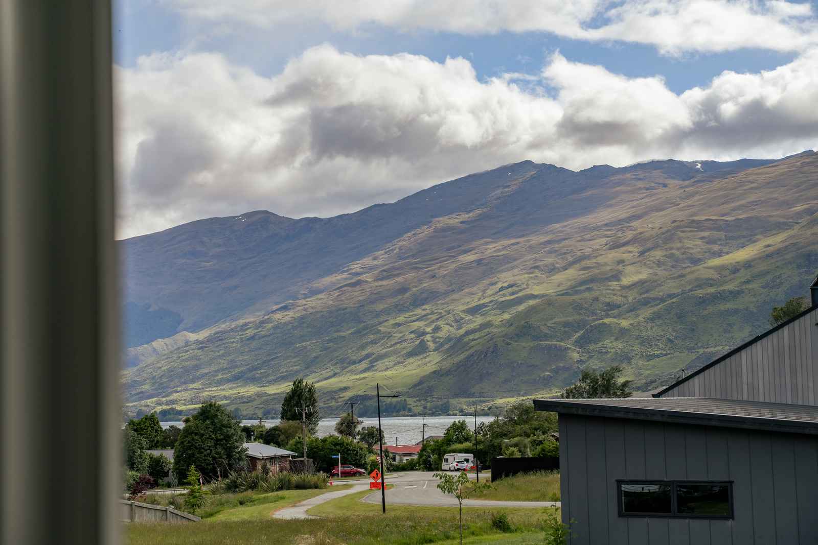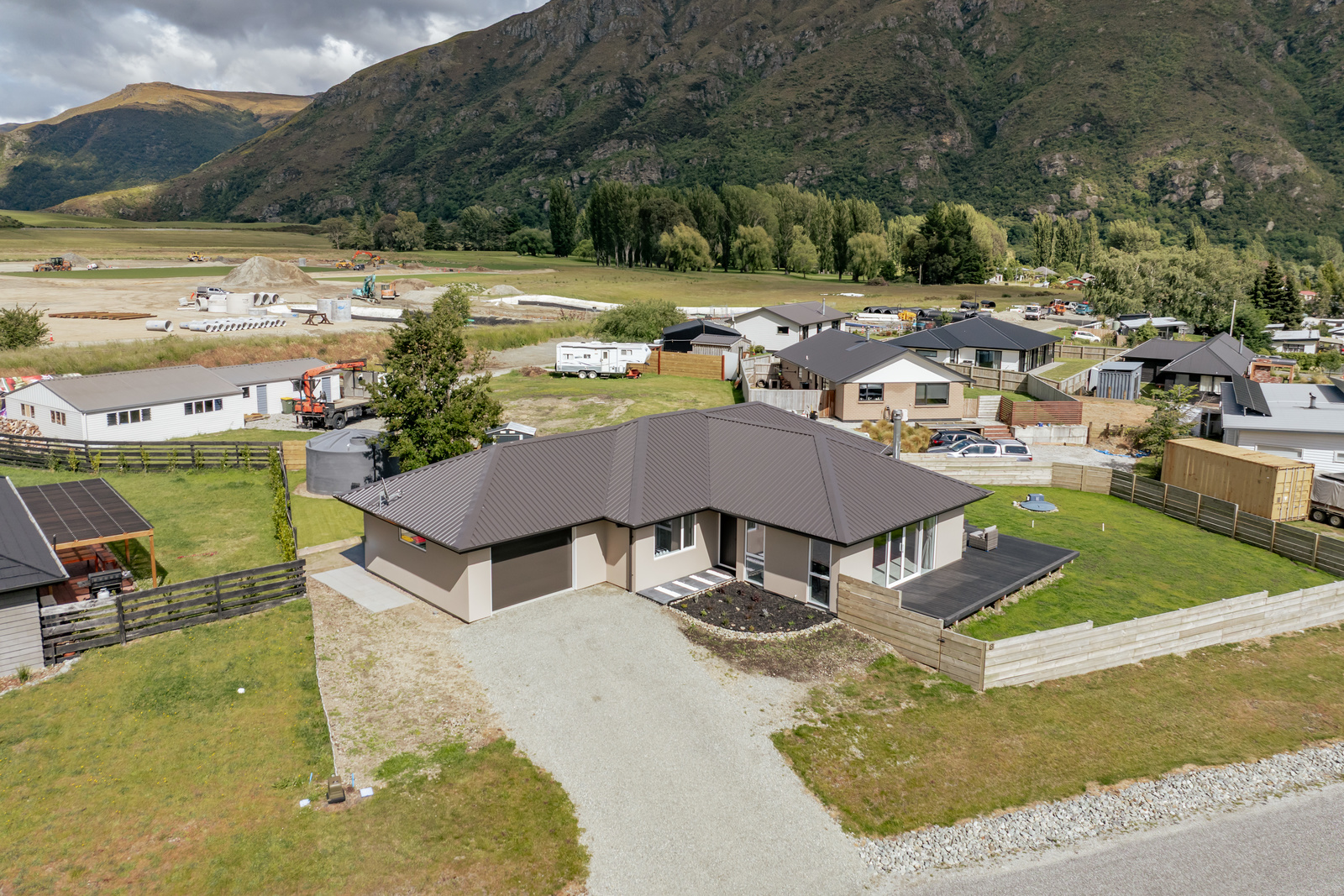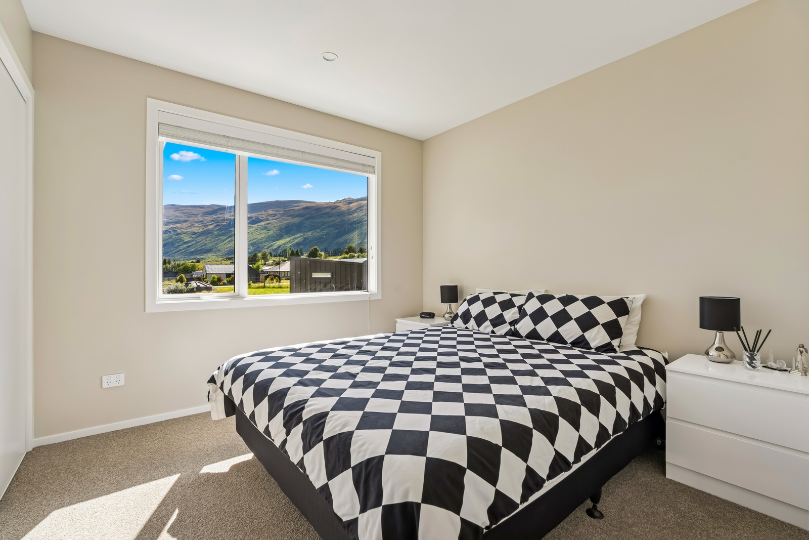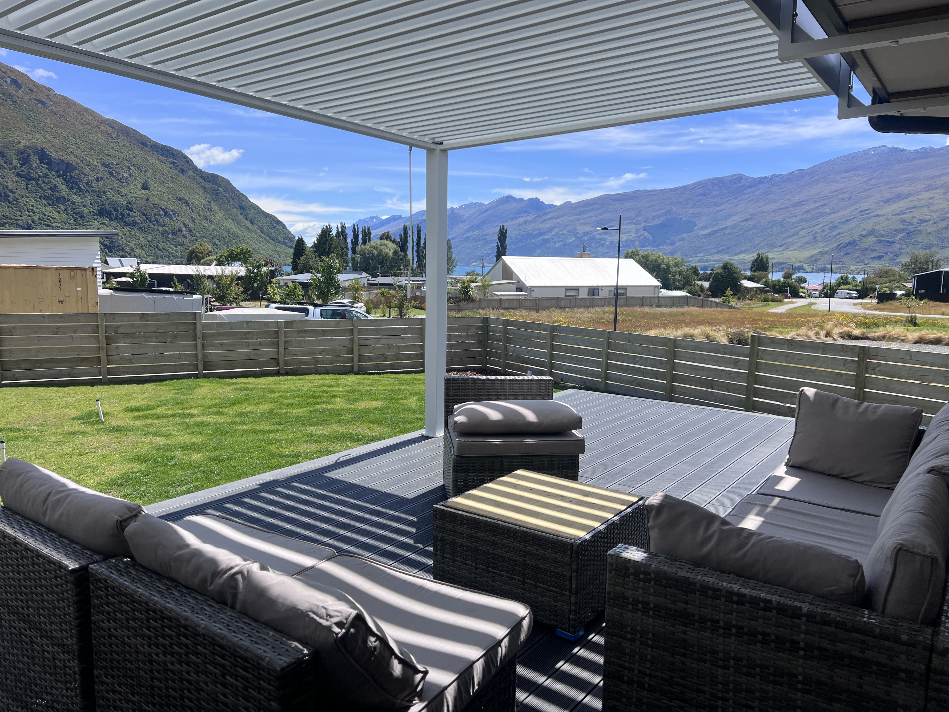 Step inside to an inviting open-plan kitchen and living area that flows seamlessly onto a wraparound deck, capturing stunning mountain views and glimpses of Lake Wakatipu.