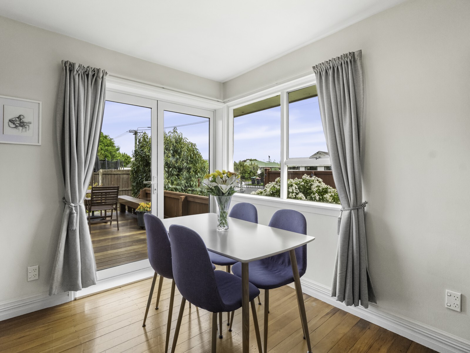The modern kitchen, complete with excellent workspace and storage, flows seamlessly to the generous dining area, perfect for everyday living and entertaining. A separate living room captures the afternoon sun and is kept comfortable year-round by a heat pump.