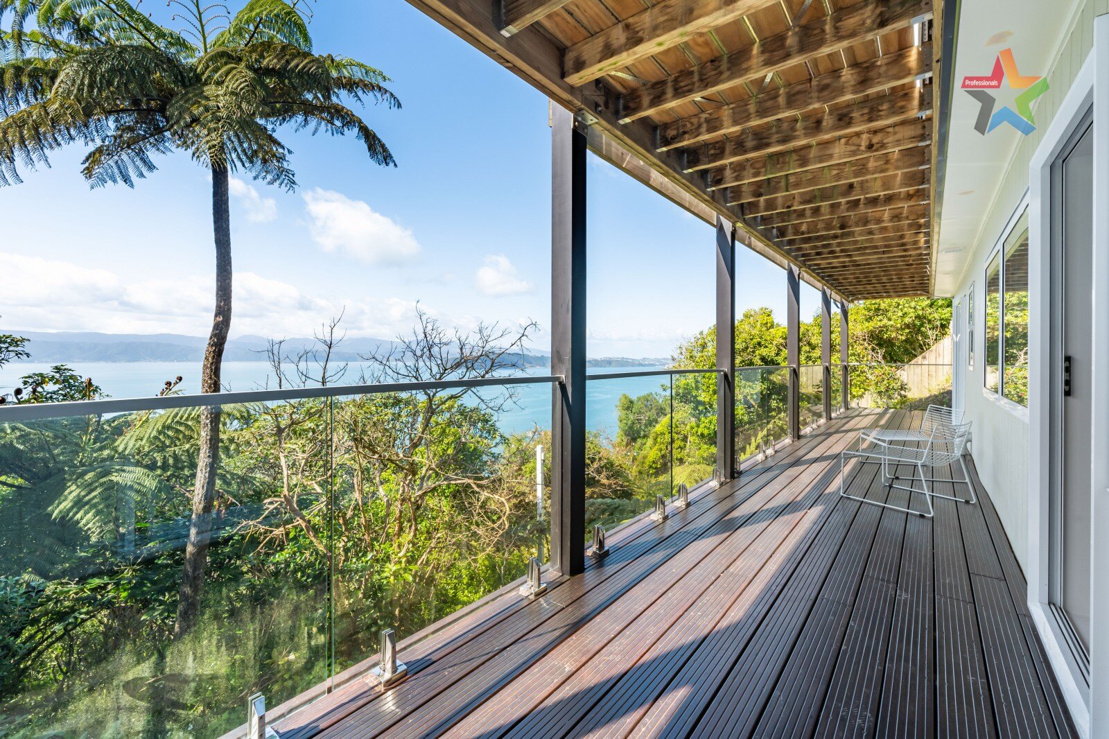 Decking platforms sweep the entire house front on each level and there is a separate viewing platform to capture the Matariki fireworks from unparalleled privacy.