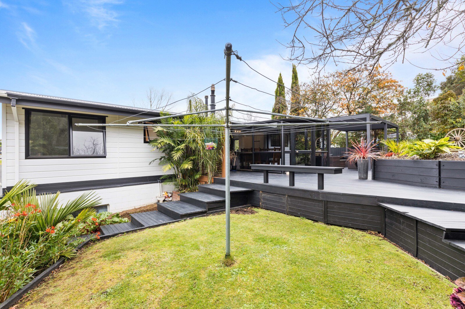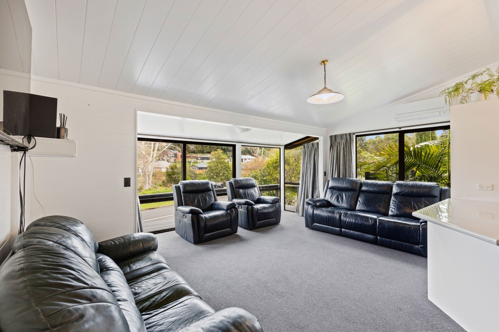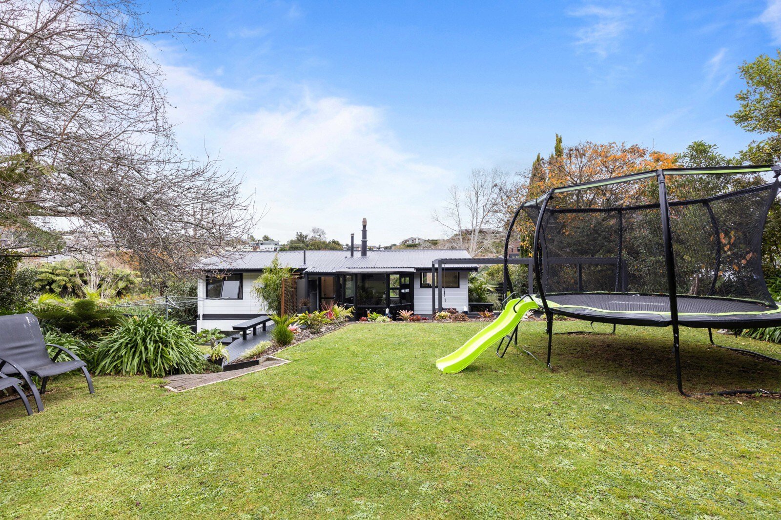 The main open plan living area features a modern kitchen with ample bench space, a lounge which opens out to a northwest facing balcony and a conservatory that provides a great expansion of the whole space. The interior has been professionally redecorated throughout, creating a light and inviting atmosphere so all you have to do is choose between the cozy heat pump or the traditional wood fireplace for winter warmth. Convenient layout of the three bedrooms around the updated family bathroom, allows easy access for everyone. Additionally, there's a separate laundry room which provides a shortcut to the backyard making outdoor activities and chores more convenient.