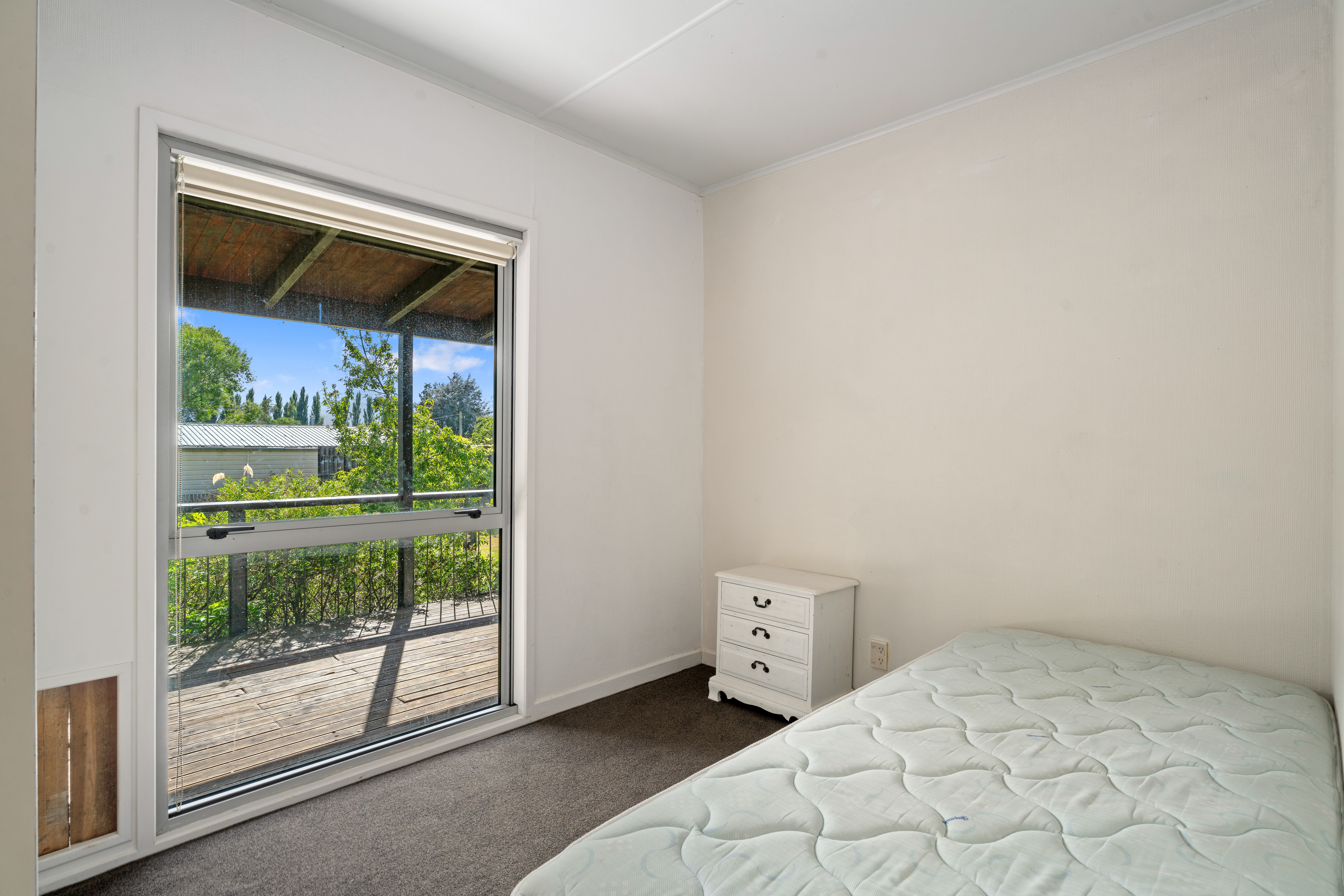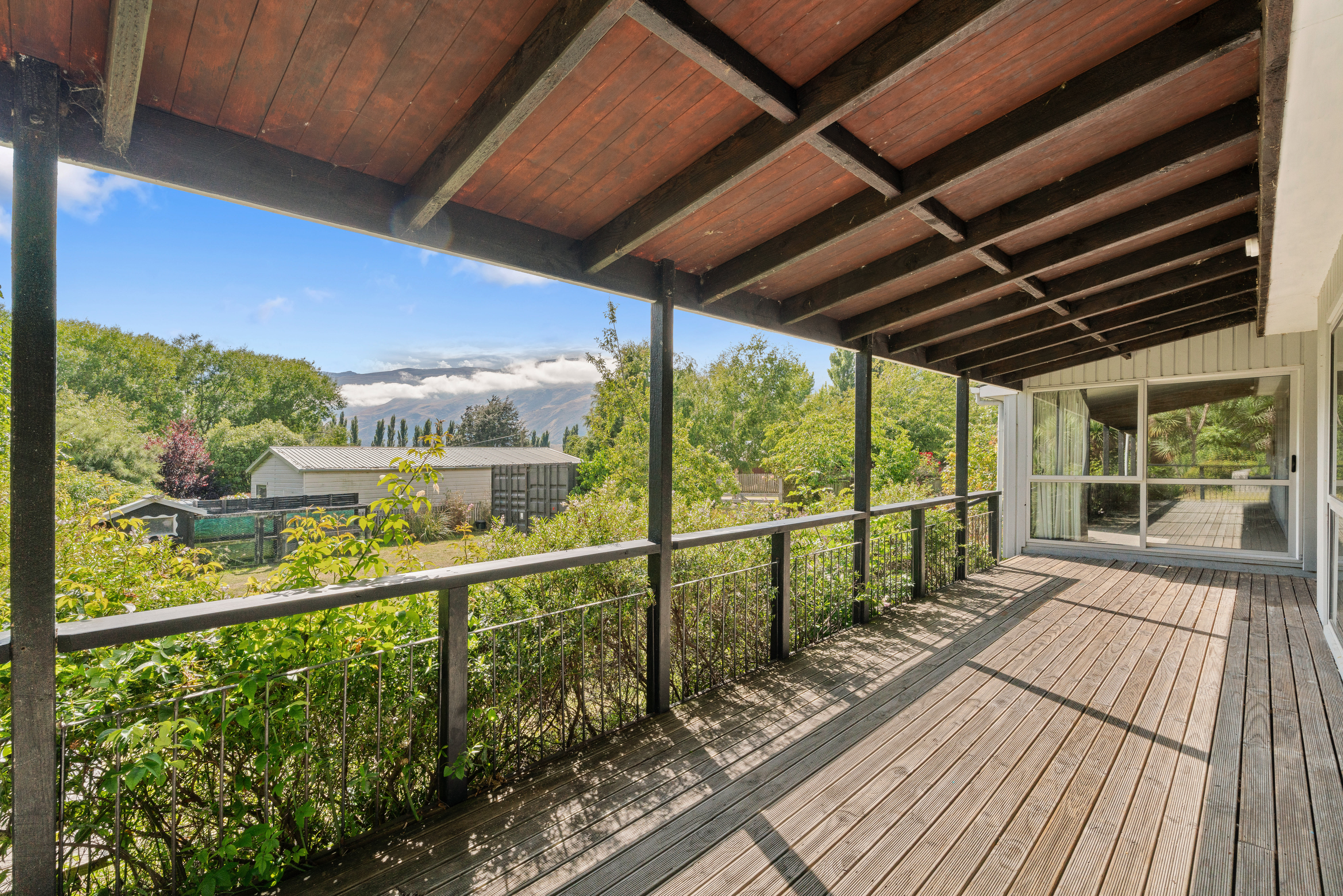 The home has an open plan kitchen living, with a wood burner for heating. The master, with walk in wardrobe, opens out to the covered deck that runs along the front of the house. The property has a storage shed and undercover area ideal for working on projects.
