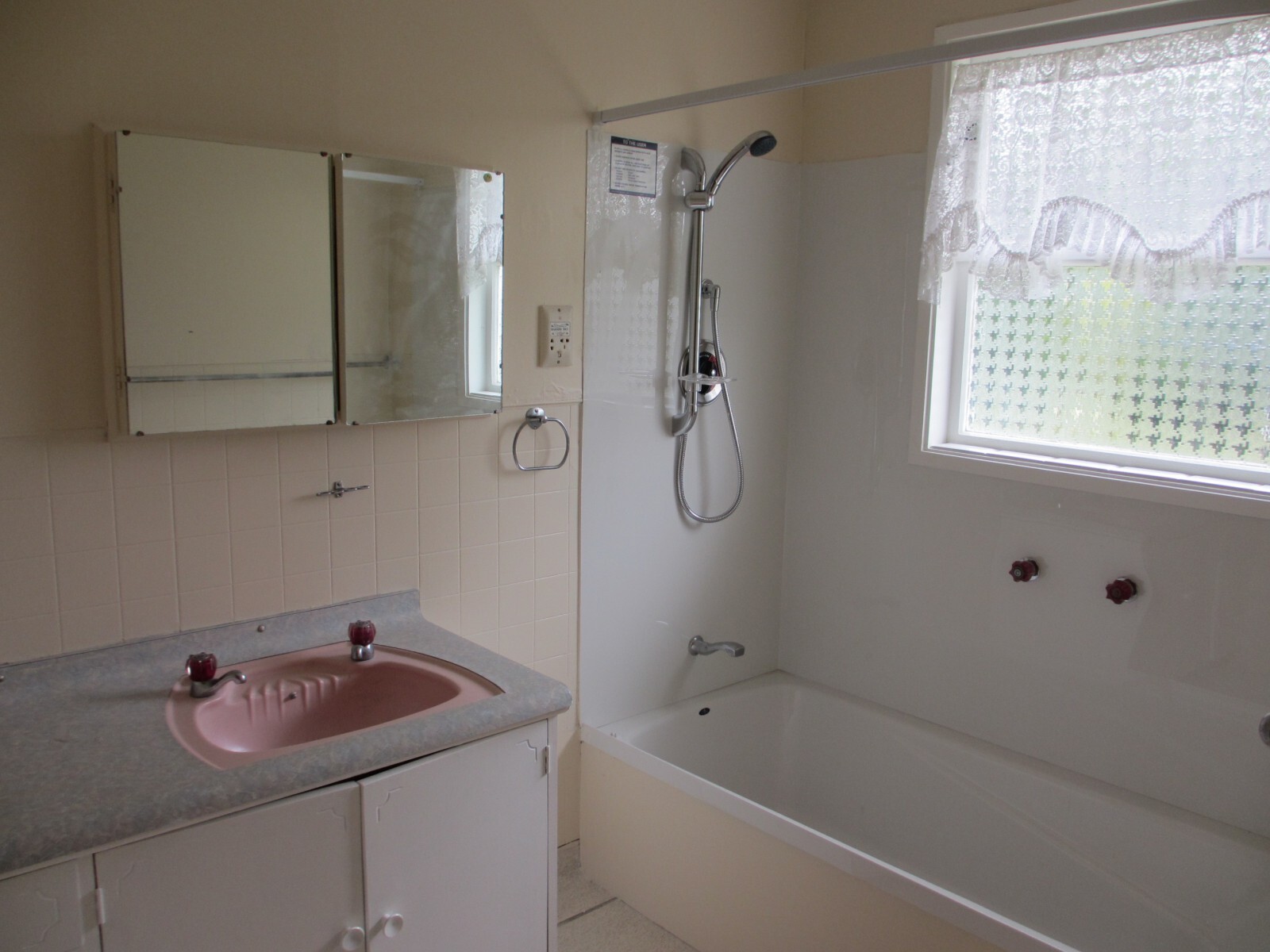 - Bathroom includes shower over bath and vanity
