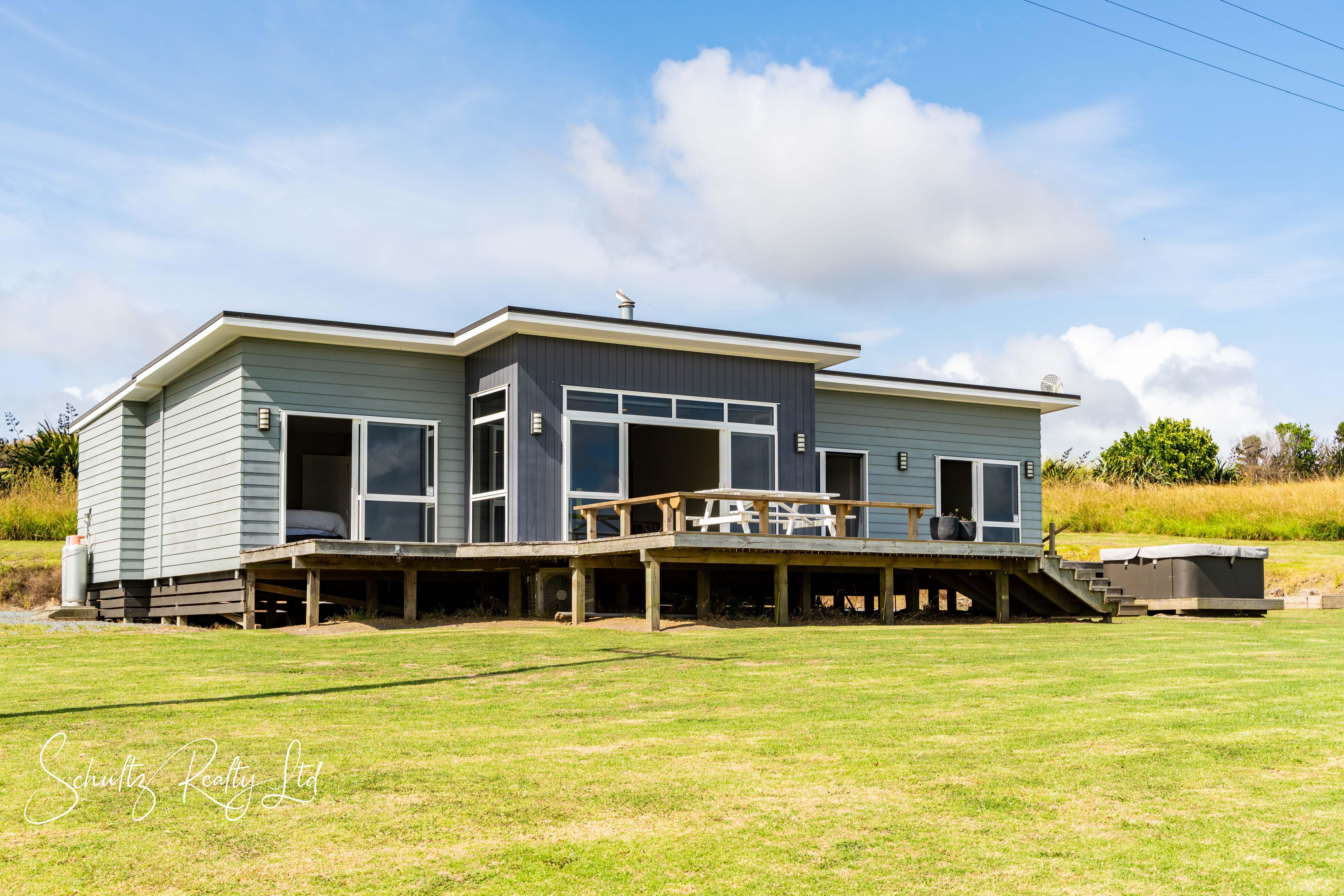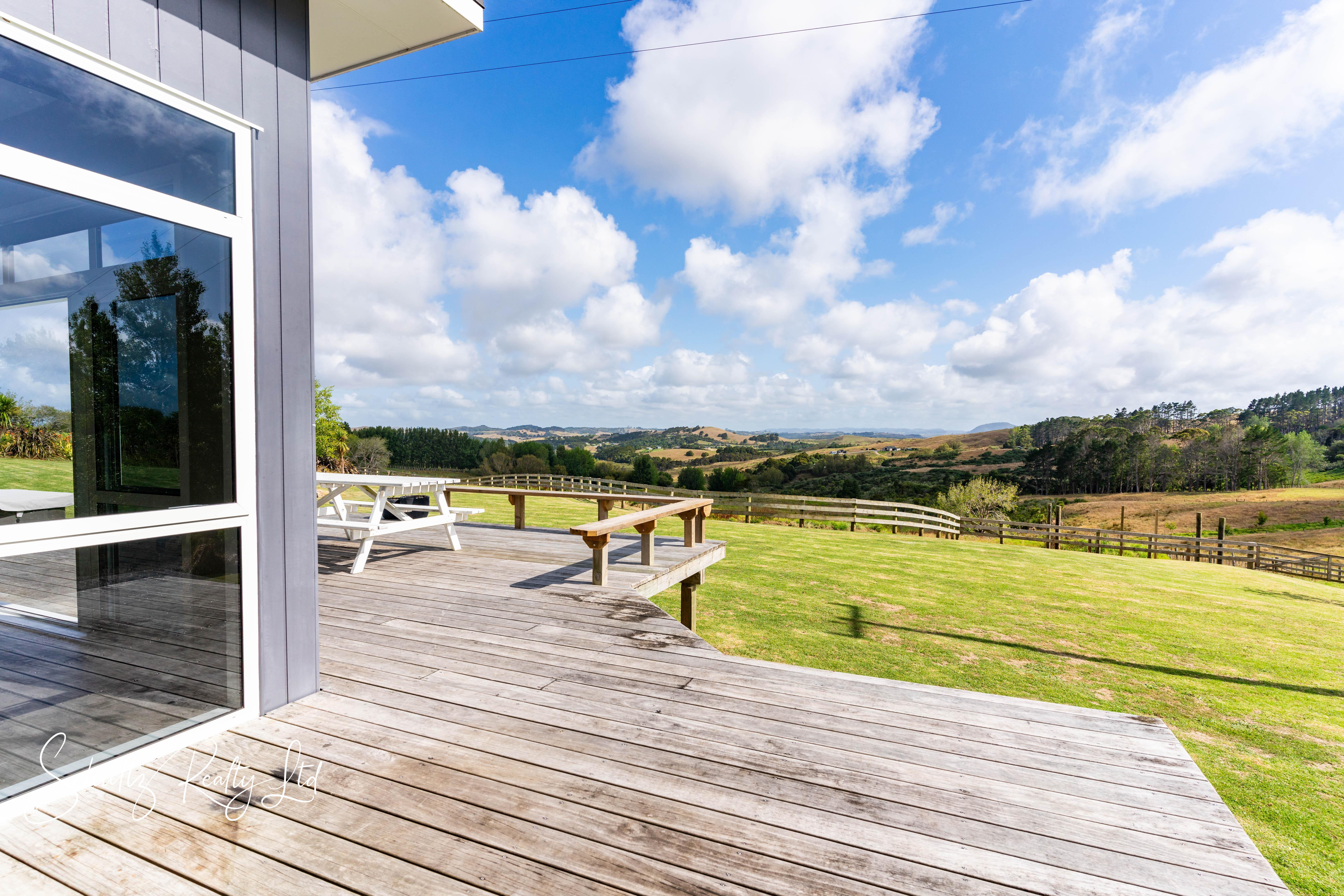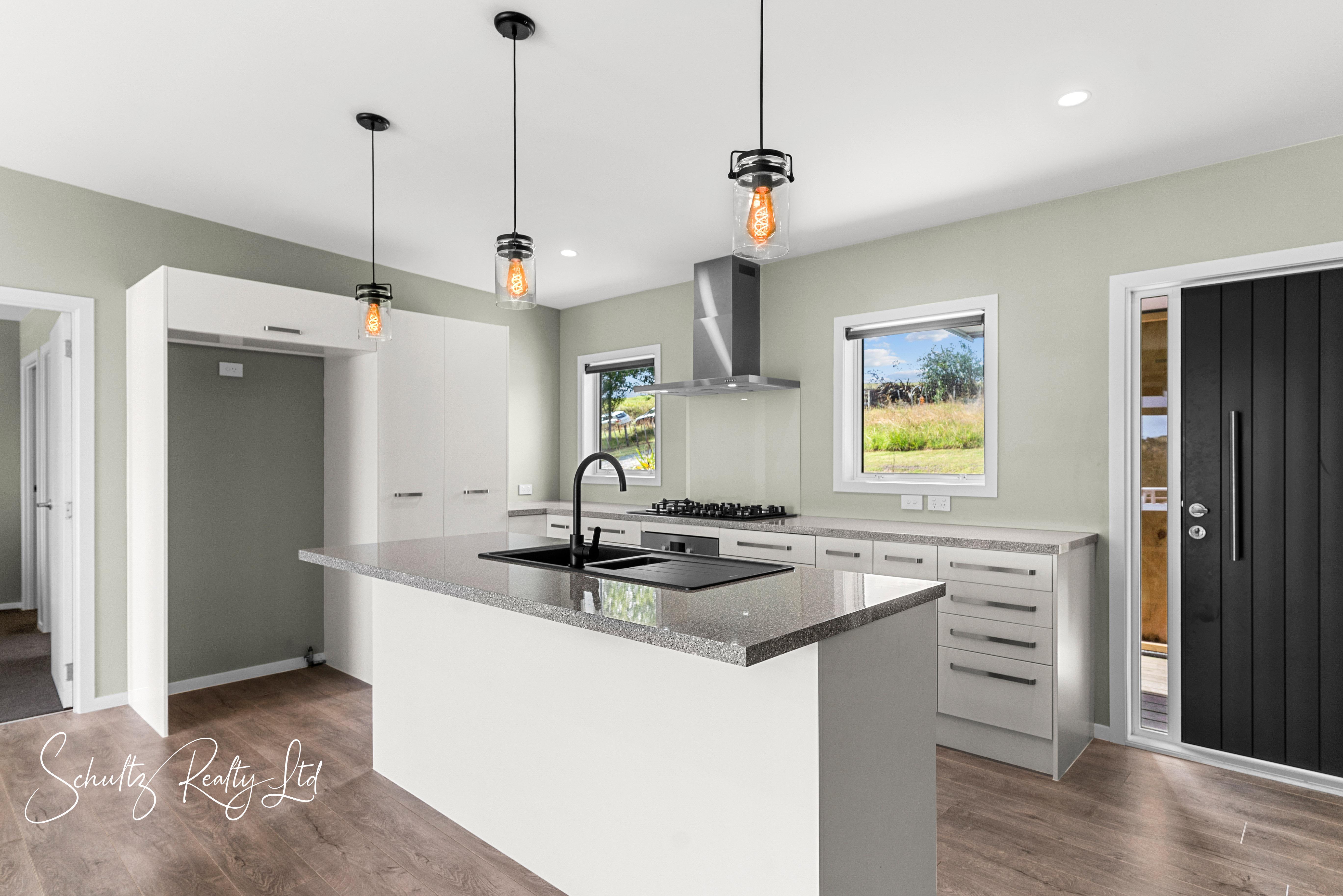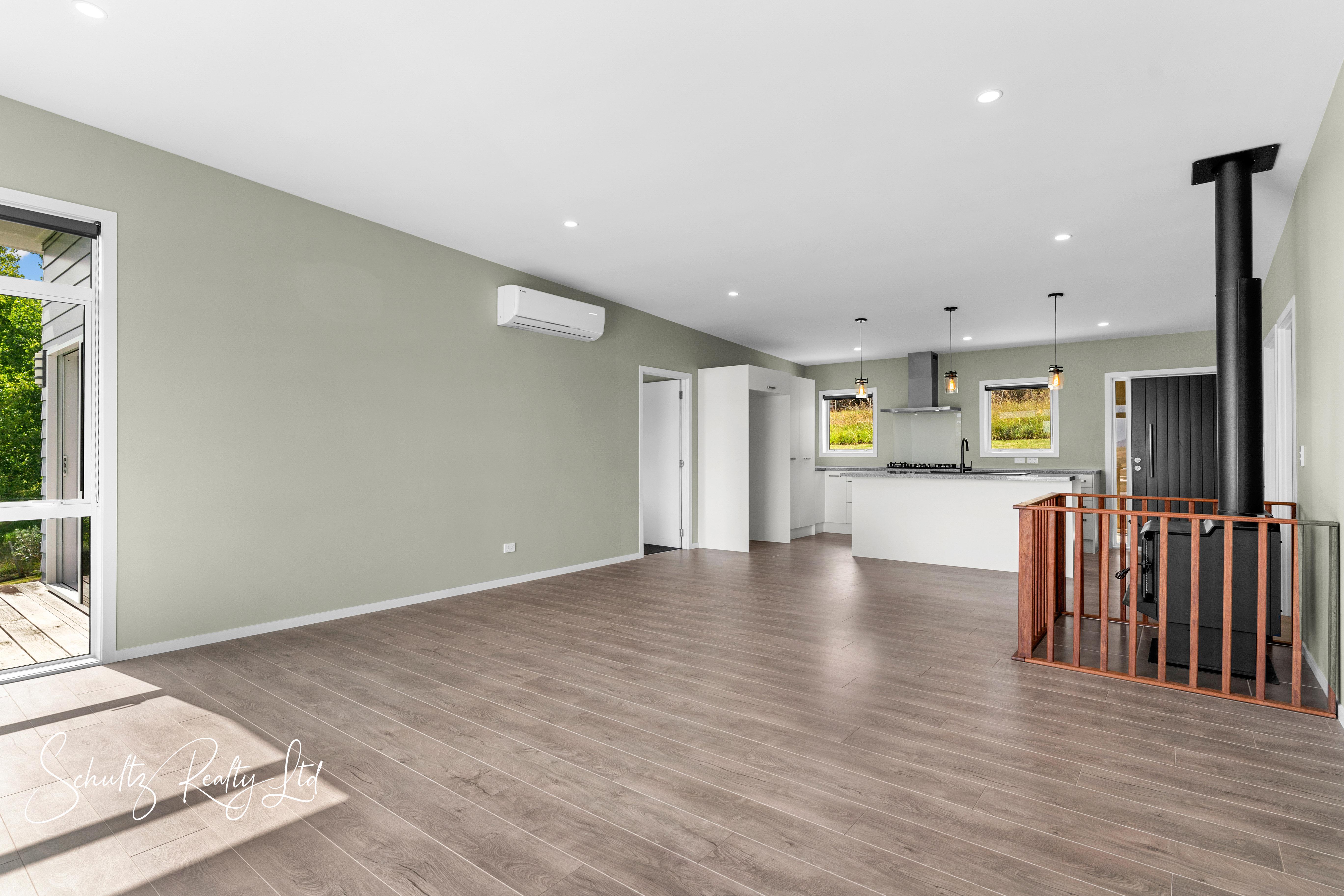 The deck provides an incredible vantage point to take in breathtaking views, making it the ideal setting for alfresco dining, summer barbecues, or simply unwinding with a glass of wine as the sun sets. The contemporary kitchen is a chef's dream, boasting sleek cabinetry, high-end appliances, and gas cooking for seamless culinary experiences. Whether preparing meals for family or hosting guests, this space is designed to inspire creativity and convenience. The open-plan living area enhances the home's airy and welcoming feel, creating a warm and inviting space where everyone can come together. Comfort is a top priority in this home, with double glazing, a heat pump, and a cozy fireplace ensuring a pleasant atmosphere all year round. The extra-large bathroom provides a touch of luxury, featuring premium fixtures and generous space for relaxation.