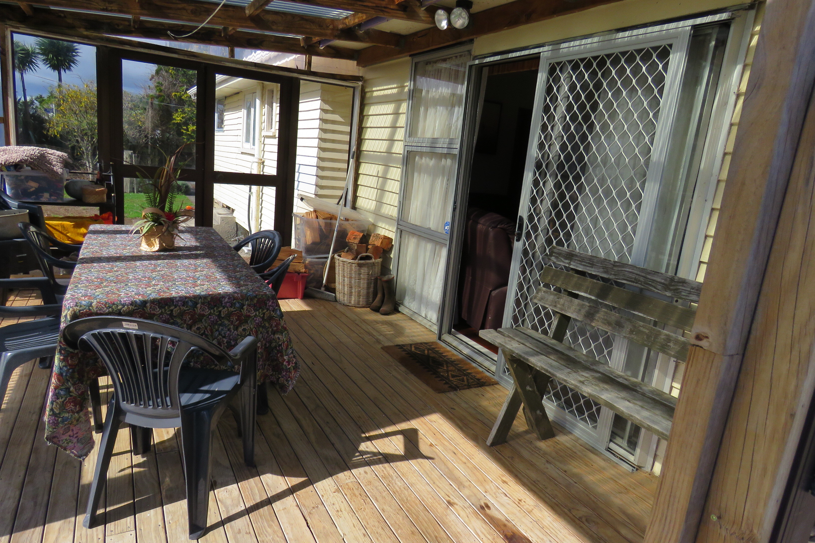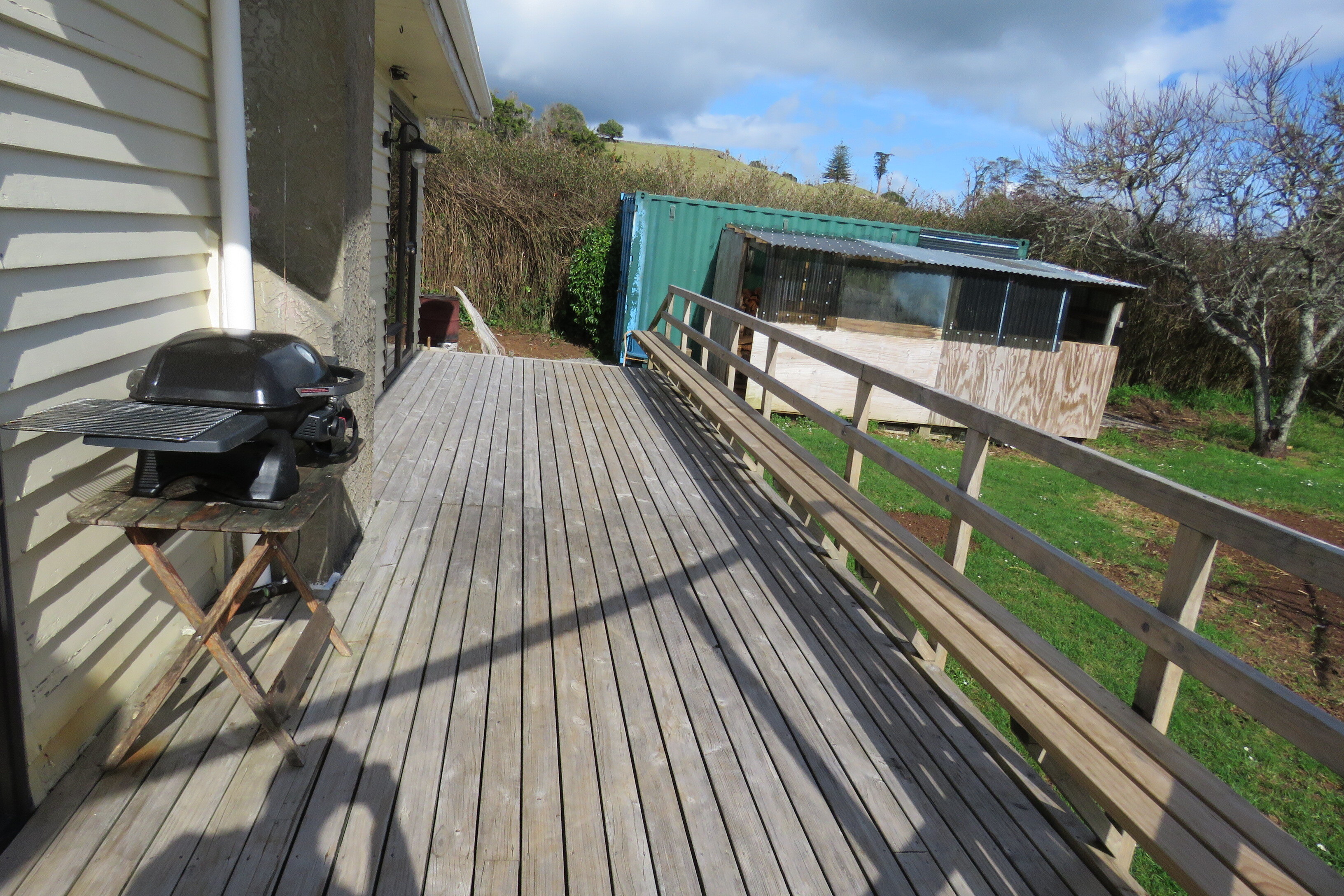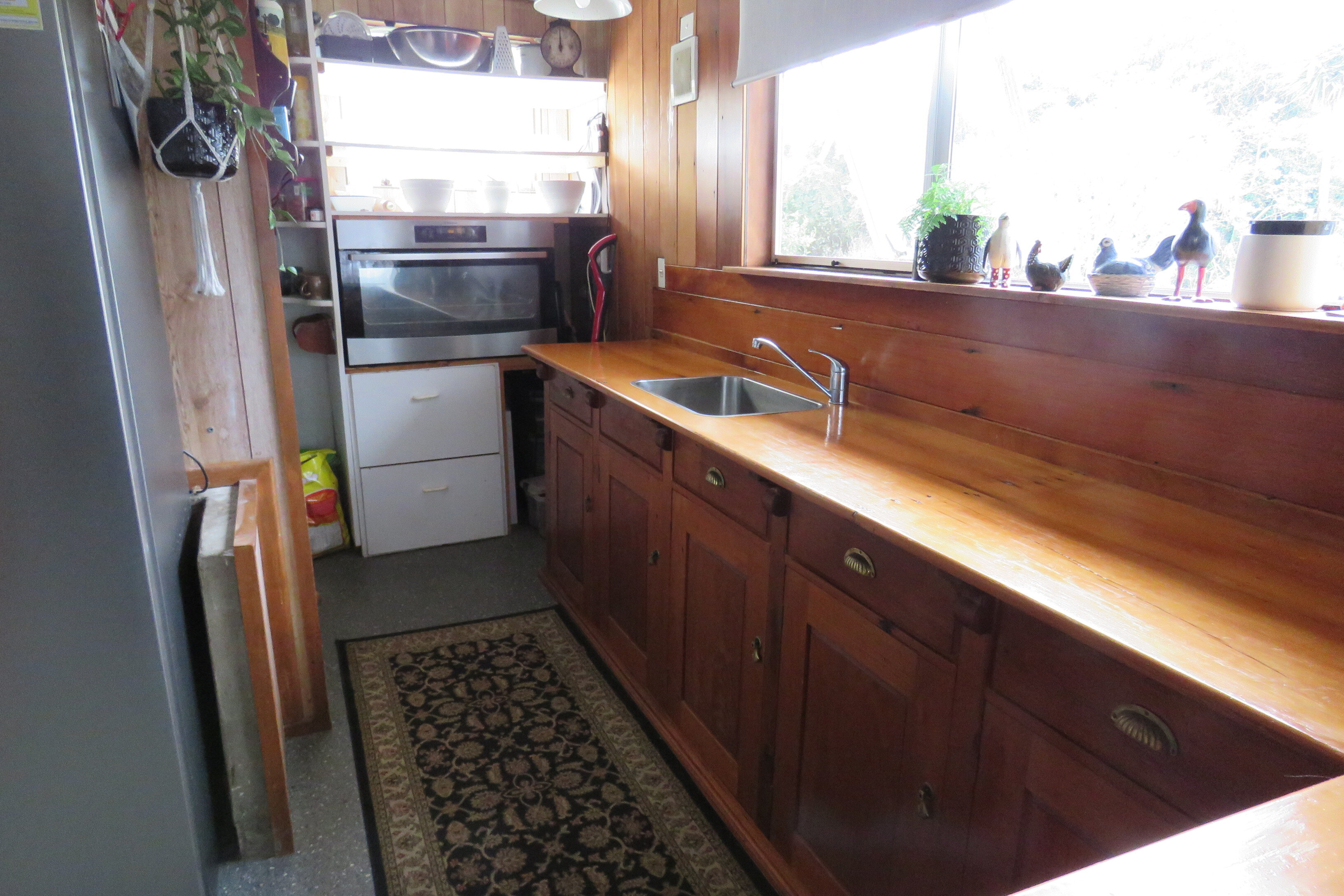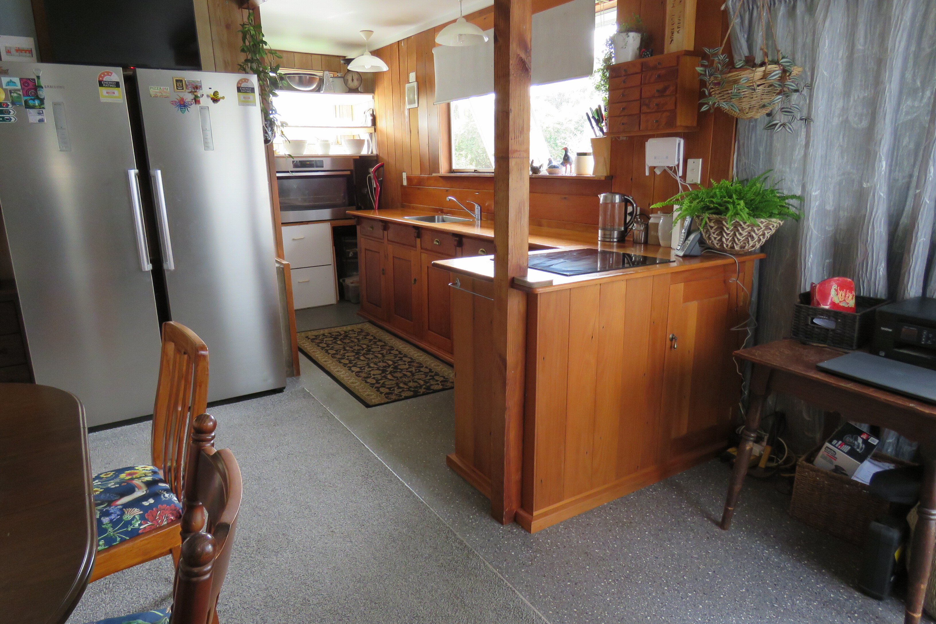 There is a modern kitchen with a beautiful Kauri bench top and a new bathroom with wheelchair access. The cosy lounge has charmingly restored black Taraire flooring heated by a woodburner fire. There is a ramp access to the front door which has a porch to dry off in, large covered decks for extra living during the hot summer months.