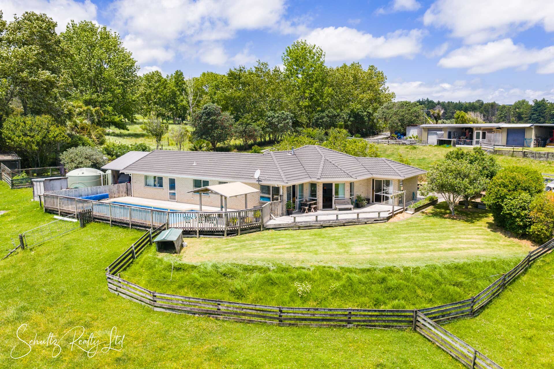 effortless flow onto a large wrap-around deck overlooking the pool - an ideal spot for entertaining and soaking up the rural