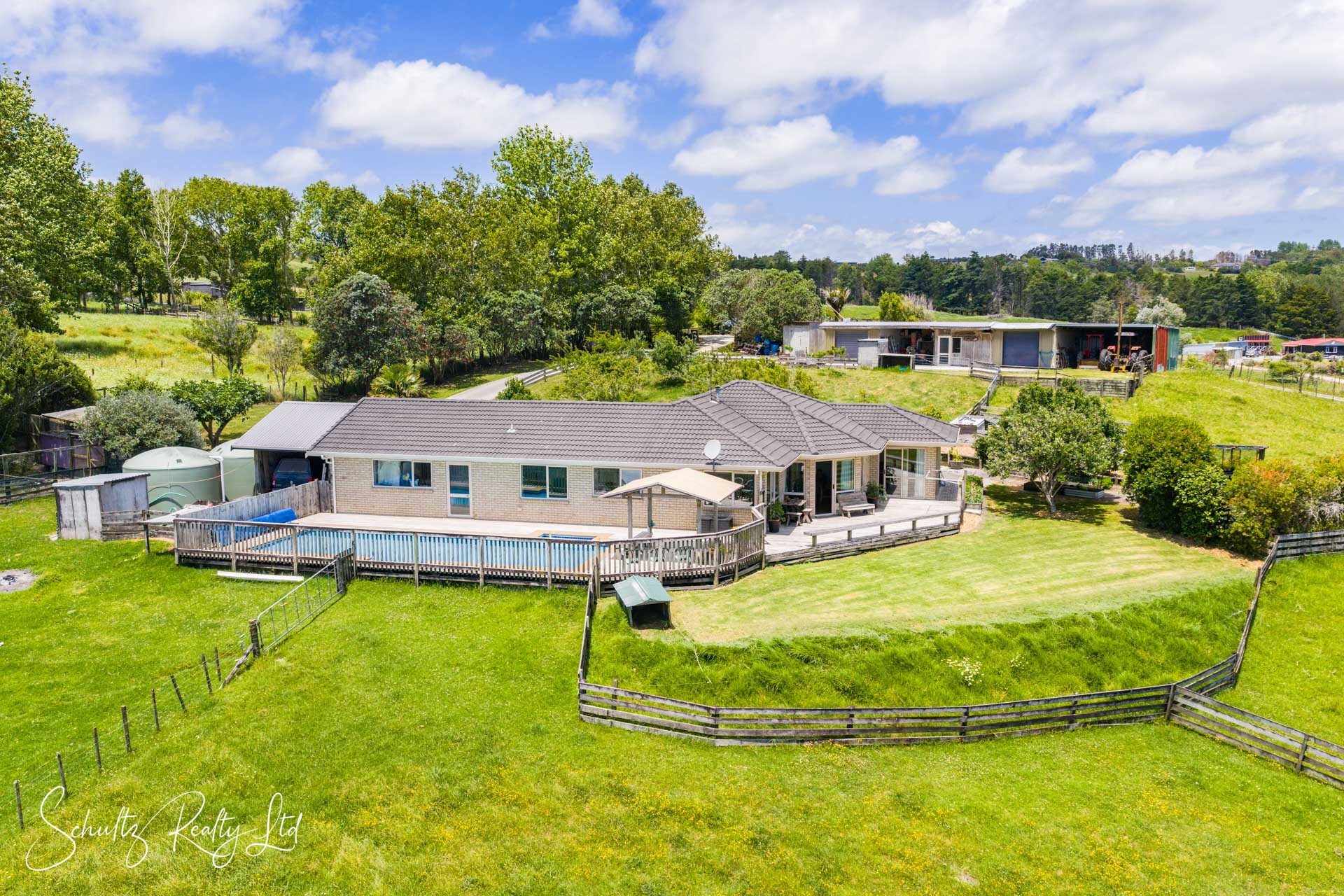 as a butchery, plus tractor and workshop bays). There's also a dog kennel, chicken coop, little wool shed, and a picturesque pond that completes this idyllic rural setting.
