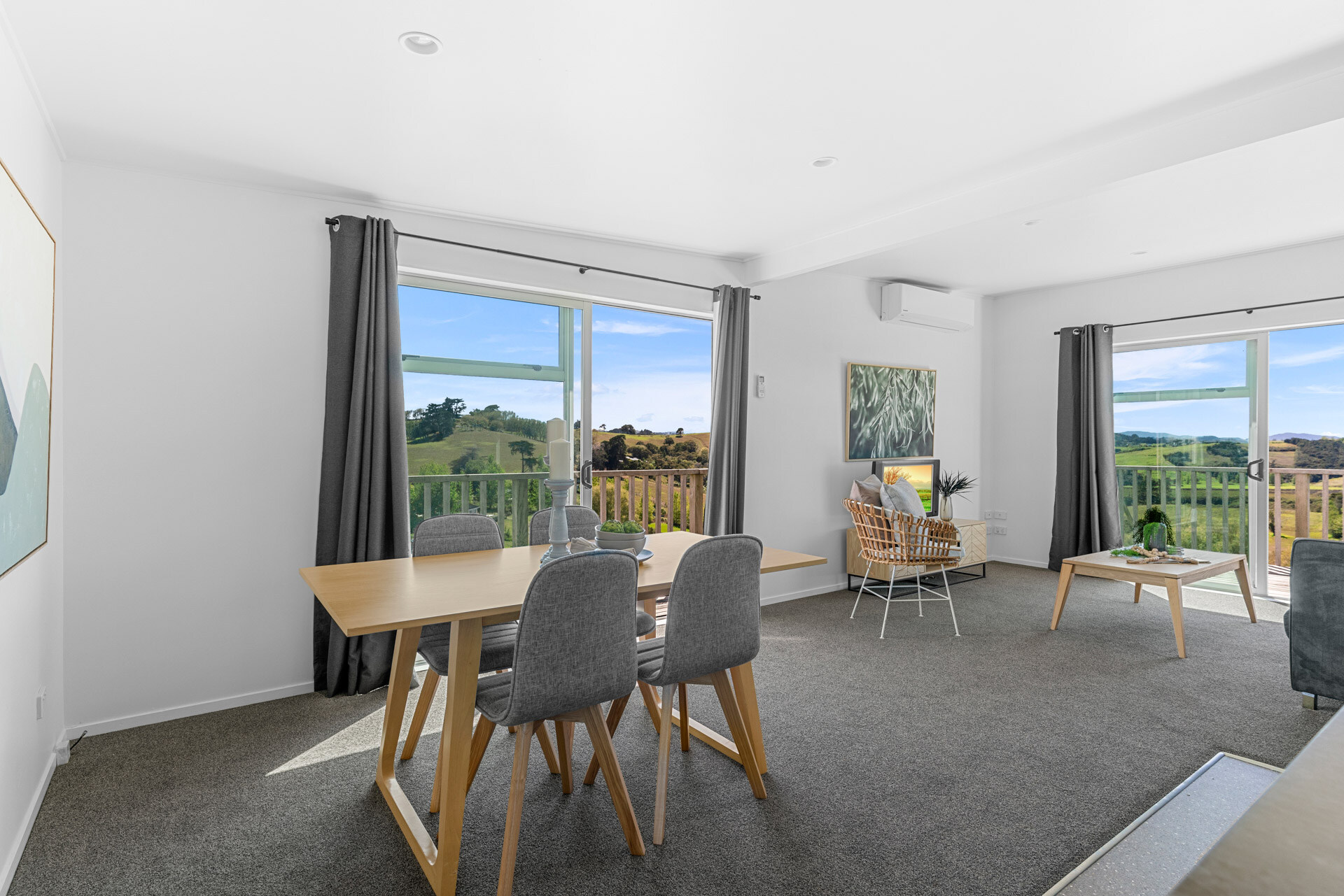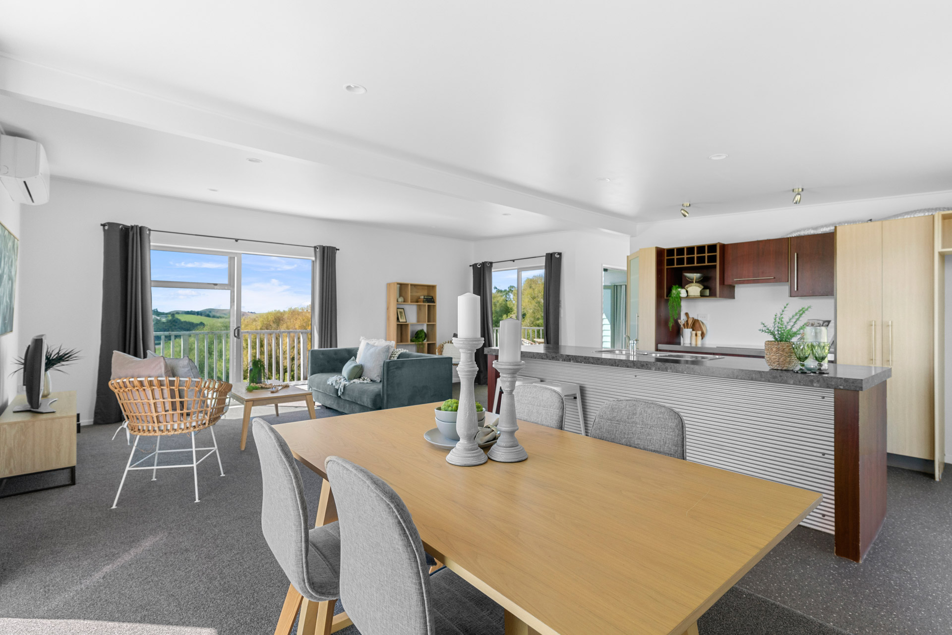 Step inside to a light-filled open-plan living area that spills out to a wrap-around deck, ideal for long summer evenings or lazy mornings with coffee in hand. The stylish kitchen, new flooring, and fresh paint throughout add a modern touch, while a heat pump and full insulation keep things comfortable all year round.