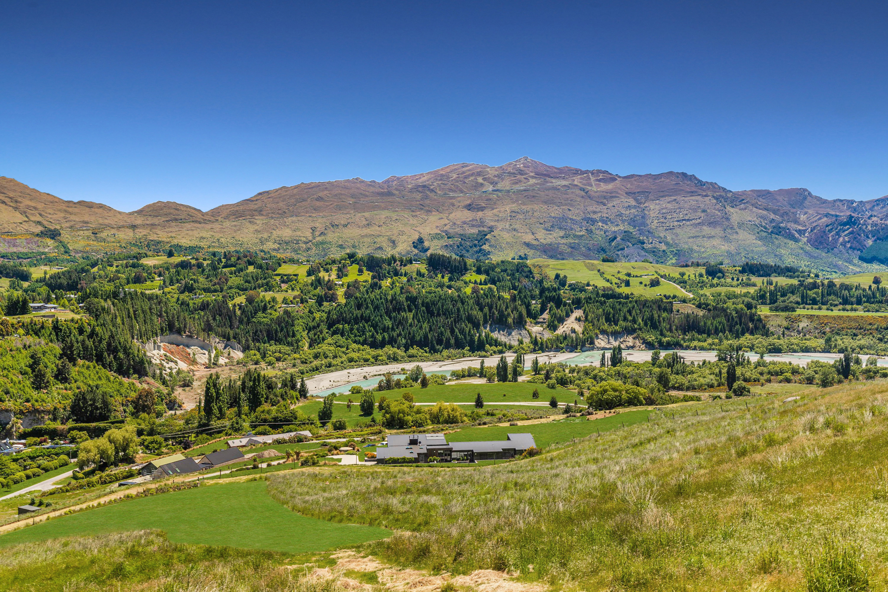 Magnificent 180-degree mountain views sweep from the Crown Range and Coronet Peak to Queenstown Hill, Mt Dewar and beyond.